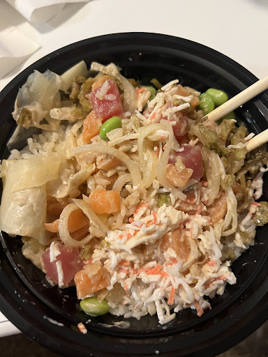 Read moreThis place was very clean and the man working behind the counter, who led me to believe he is the owner, was very kind and nice to be around. However, the place was empty on a Friday night at 6:30, which is odd for a restaurant with such high reviews. I got a regular poke bowl with tuna and salmon. All the fish was very dry looking behind the counter and the spicy tuna even had a crust on it. Unfortunately it didn’t taste any better. I got the spicy and honestly all I could taste was a mild hot sauce flavor but nothing else. The rice was dry. Despite all this, the service was good and the restaurant was very clean...