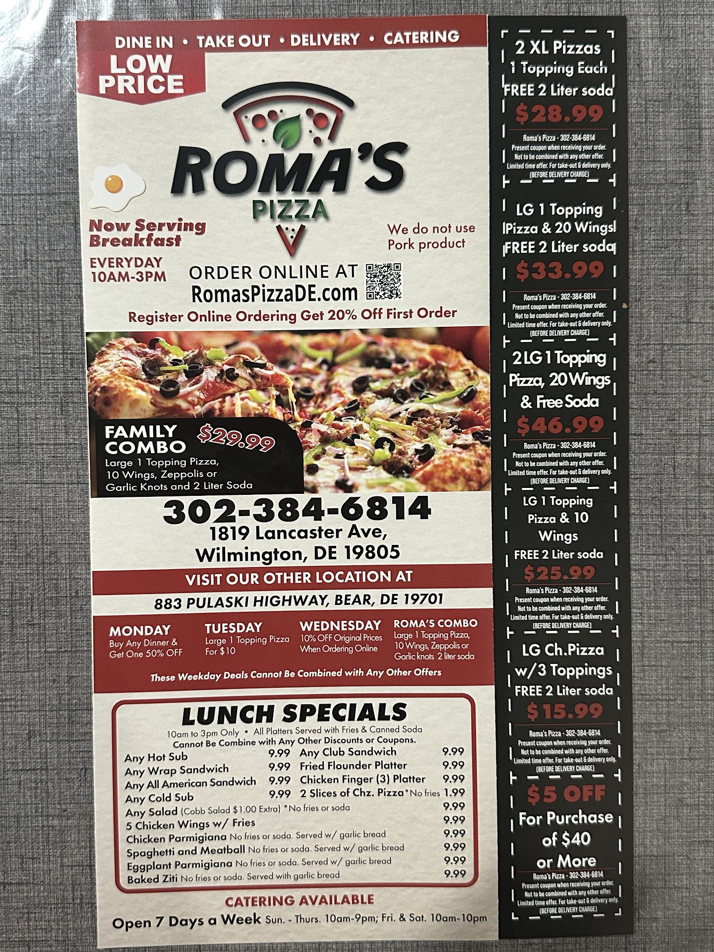 BEWARE, WE WILL NEVER EAT HERE AGAIN …My coworkers and I decided to order lunch from Romas because we consistently ate there when the restaurant was called Sicilys and the food was always excellent! We were absolutely wrong. All of the food was horrible! We ordered a variation of foods so we could try it out and it all ended up in the garbage. To make matters worse, the delivery driver added a $15.09 tip to the card without consent! Then he lied and said one of us hit the button on his phone that confirmed the tip. He never provided a receipt and now we understand why. I actually called the restaurant and asked for a copy of the receipt and asked for them to show me where someone signed for the tip. Needless to say, they never produced the signature for the tip. The restaurant personnel who answered the phone was very rude but, made the driver come back to the building to bring the $15.09 cash tip. When speaking to other building staff who ordered from Romas they informed that they too experienced horrible food and the driver adding unauthorized tips. This place is a joke, with horrible food, bad customer service, and scam artists...