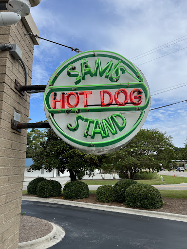 If you want a hot dog joint without a lot of âhooplaâ this is it! They have simple to complex options to make your dawg the best ever. Want an Atomic dog with everything they can find thatâs HOT or just a plain dog with no bun âŚ. They serve it here. Top your meal with hot fresh crinkle cut fries and youâve got one fine Carolina meal! Rest assured though if youâve got someone in your party that doesnât like hot dogs (shame on âem) there are a couple of options for them too. The final winning moment for me was they donât require (shame you into) a tip before you pay! They have an old fashioned tip can on the counter which I was actually happy to feed when I finished eating because they earned it! All in all, if you want a great hot dog go to Samâs...