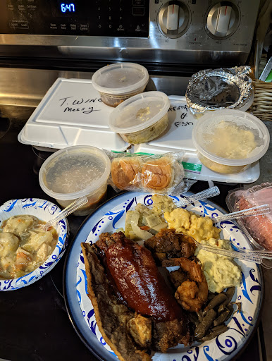 Ā Ā Ā Read more2 Stars because the yong man taking orders was very polite and professional and the woman to whom he referred to as āMom momā also very nice! The food was not worth the $51 I paid for very disappointed the bake Mac and cheese was not baked at all the greens tasted more like vine and pickle juice the cakes were the best part and you can tell those were mad from box and not scratch. Worst part was when my ticket was presented to the line cook aka Pop pop he demanded that the young man recall my chicken wings and turkey wings because he didnāt feel like making them. The poor young man could only chuckle nervously and the unprofessionalism and just straight ghetto behavior and simply replied I didnāt call back the other orders why would I call back these. The batter mixture for the turkey wings was mushy and not done and everything was over seasoned with nothing but straight old bay!...