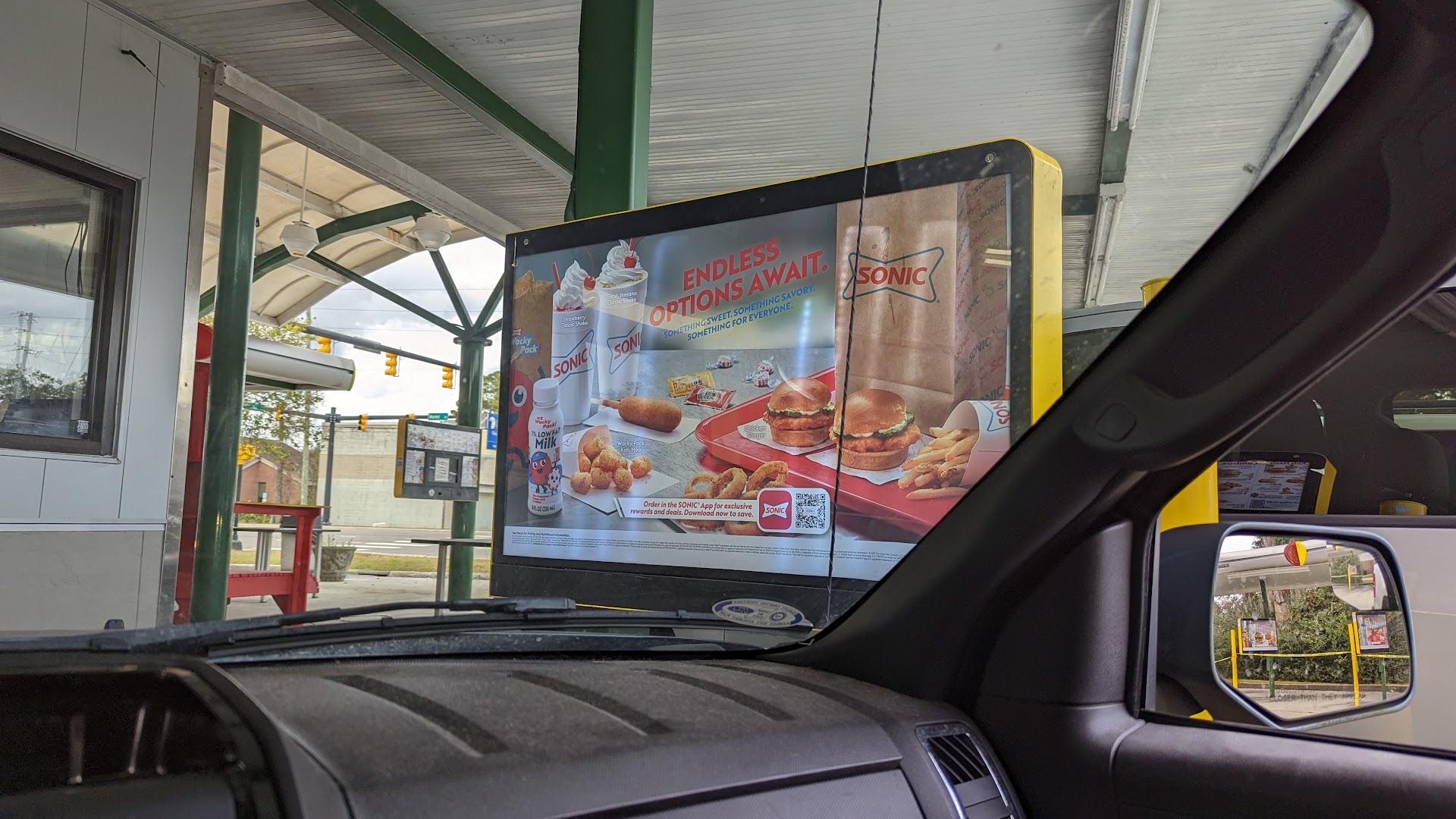 If you like places that are serving fun new things, in an outdoor drive up experience, then you'll enjoy Sonic! The commercials got to me, I love buffalo chicken and I just had to try their buffalo chicken snack. And then when they advertised a caramel milkshake I thought I'm going. I've only been there a couple of times and I wasn't pleased those times with how long it took to get your food. But this time I use the app and ordered ahead and I have to say it did work well. The most confusing part was the stalls to the left did not have noticeable stone numbers and that's what you're supposed to input when you get there, so I pulled to a stall on the right but did have numbers, but apparently that side was closed and there was no indication it was closed until the young lady knocked on my window, That could have been done better. But once I realized I needed to push the button and tell them they had made me change lanes, the food was out immediately. The milkshake was so thick I couldn't even drink it, which is the sign that it'll take me a while to consume. I was eager to try the buffalo snack bites and they were very good. I would compare them to a Chinese crab wonton but American. The feeling was adequate. The encasement was good. There wasn't too much of it. It did allow for you to crunch and it took a couple of bites to eat it which is great. I don't think one serving is enough. I think it leaves you wanting a few more. But it was delicious and I didn't have to do the work involved in prepping it. Definitely worth a try. I don't think it's going to stay forever. They seem to rotate things so I'm debating if I need to try it again or if it is taught me I could probably do it myself. I have a pampered chef tool that I think could easily make this a fun appetizer for a football game. The Wilmington market Street location of Sonic was just fine and would be fun for after a soccer game with your kids or if you've been shopping and just don't want to walk...