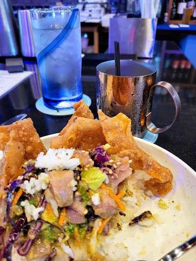 Read moreBeen here twice. We had the club- so full of ham and turkey I couldn't even get my mouth around it; the trash can nachos- huge portion (3 people ate it!) lots of tasty pulled pork and goodies, but a tad sweet for my taste; Tuna Poke bowl- got it both visits it was so good, lots of fresh tasty tuna & avocado, crispy wontons were just a tad greasy 2nd time but still good; Wagyu meatloaf- got it twice also, huge slab of tender meatloaf on tasty mashed taters with lots of cripsy onion tangles on top; salmon was very good; teriyaki wings were plump and flavorful. Portions are generous, food is delicious, and presentation is attractive. And the drinks... rum flight (4 different rum concoctions), coconut margaritas, sparkling galaxy cosmo, refreshing peaches and cream mule, finished off with a vodka hazelnut shot that rocked my tastebuds. The presentation is very cool. It was very busy on 2nd visit so we ate at the bar and enjoyed watching the creative process. Already have my food and drink picked for...