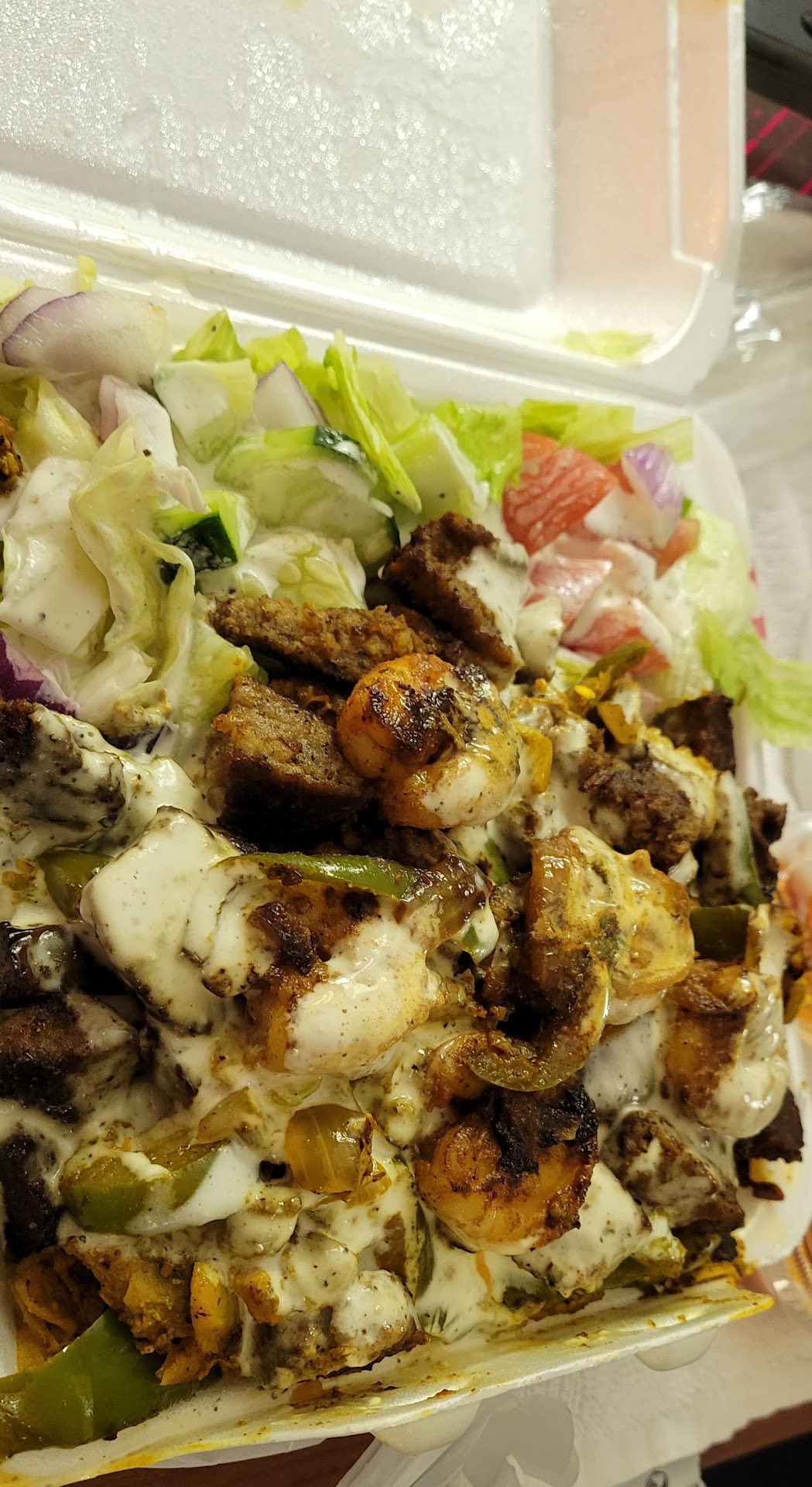 Ā Ā Ā Read moreVERYYYYY delicious halal food! As my first time there, the owner suggested the star combo meal, which comes with lamb, shrimp, and chicken. Every meat is well seasoned and piled very high on a bed of curry rice...YUMM! To balance out all the flavors, the meal comes with a cucumber salad topped with creamy cucumber dressing. No hot sauce needed with the meal because it is already flavorful. I highly recommend this place. It is a food truck parked at the corner of a gas station with no seating area but I would not pass the food up! Definitely take the food to go and eat elsewhere. My husband and I were stopping by during our road trip so we just took it back to our hotel. Overall, we were highly satisfied with the quality of food, and the customer service from the owner.. he is very nice and helpful when deciding on what...