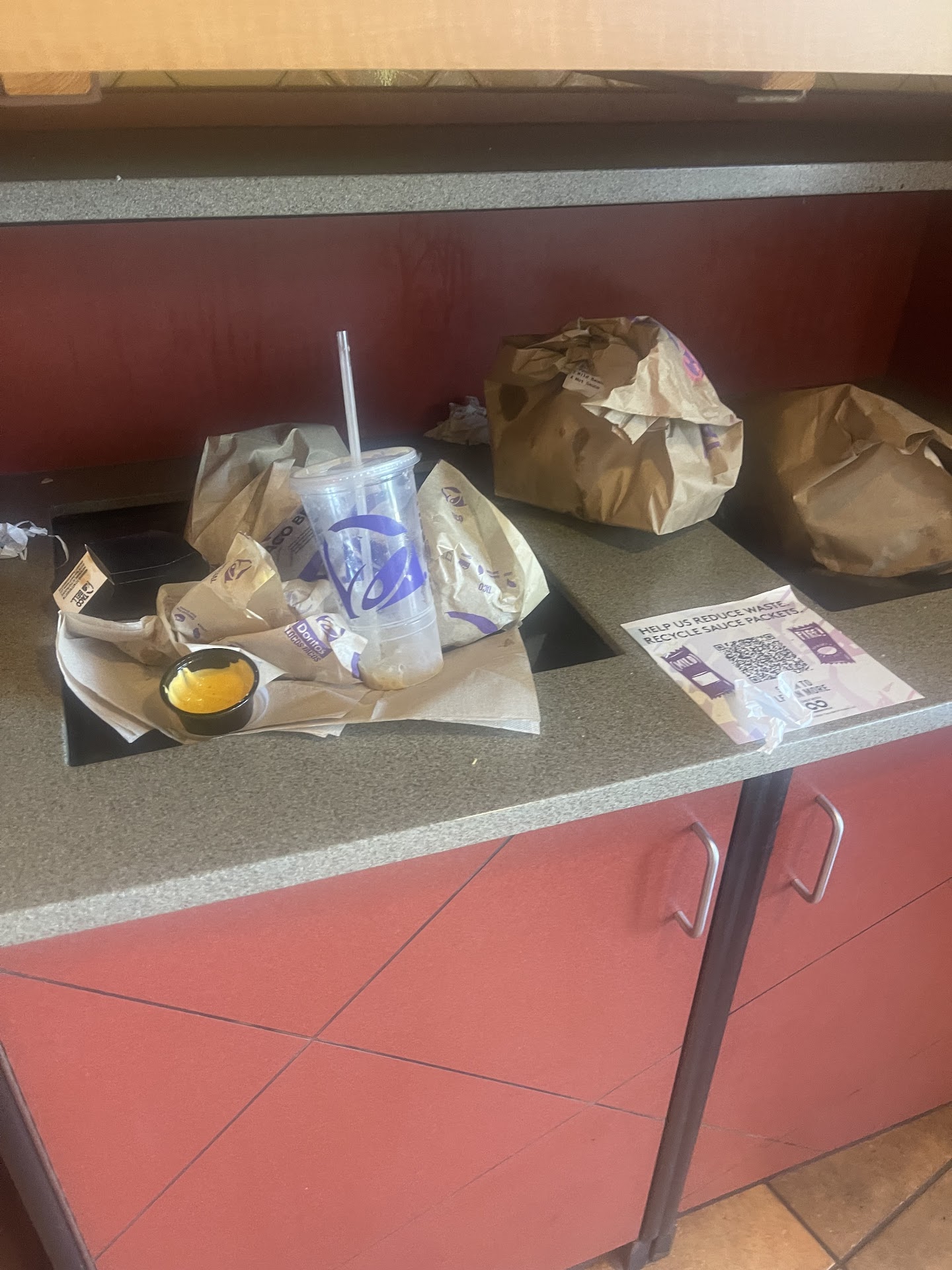 Read moreShowed up to order food for my family of 7. We tried to use the app however it was not working so we had to order at the register. Since the app was not working we were told we couldn't do half our order which was online exclusives. So we sat there and figured out something else. Once ordered it took forever to receive our food. We took our food home only to discover that everything was wrong. We were missing multiple items, like at least 5 items. The items we received were all wrong. Even the items that weren't customized had ingredients on them that aren't normally on them. We were missing burritos and sides. Also everything was just thrown into one bag and we had to struggle to figure out what everyone's order was. We live 5 mins away and by the time we got home everything was already cold and soggy. Why didn't we take it all back you ask, well we were frustrated beyond belief, they acted like they didn't care when we were there so didn't want the fight and we were all starving. We have five kids and we settled for this meal bc a situation earlier caused dinner to be later than we wanted and we thought this would be a quick and easy alternative. We were very wrong. Returning just wasn't worth the struggle or making our kids wait even longer so we settled and ate what we had. Nobody enjoyed their meal. This was a horrible experience and to spend $50 on Taco Bell and get such crappy food and missing items just sucks. Other locations use boxes to separate the meals and have provided much better service and food so we will not be returning to this location and will make sure to go to another one going forward. Very disappointing dinner and...