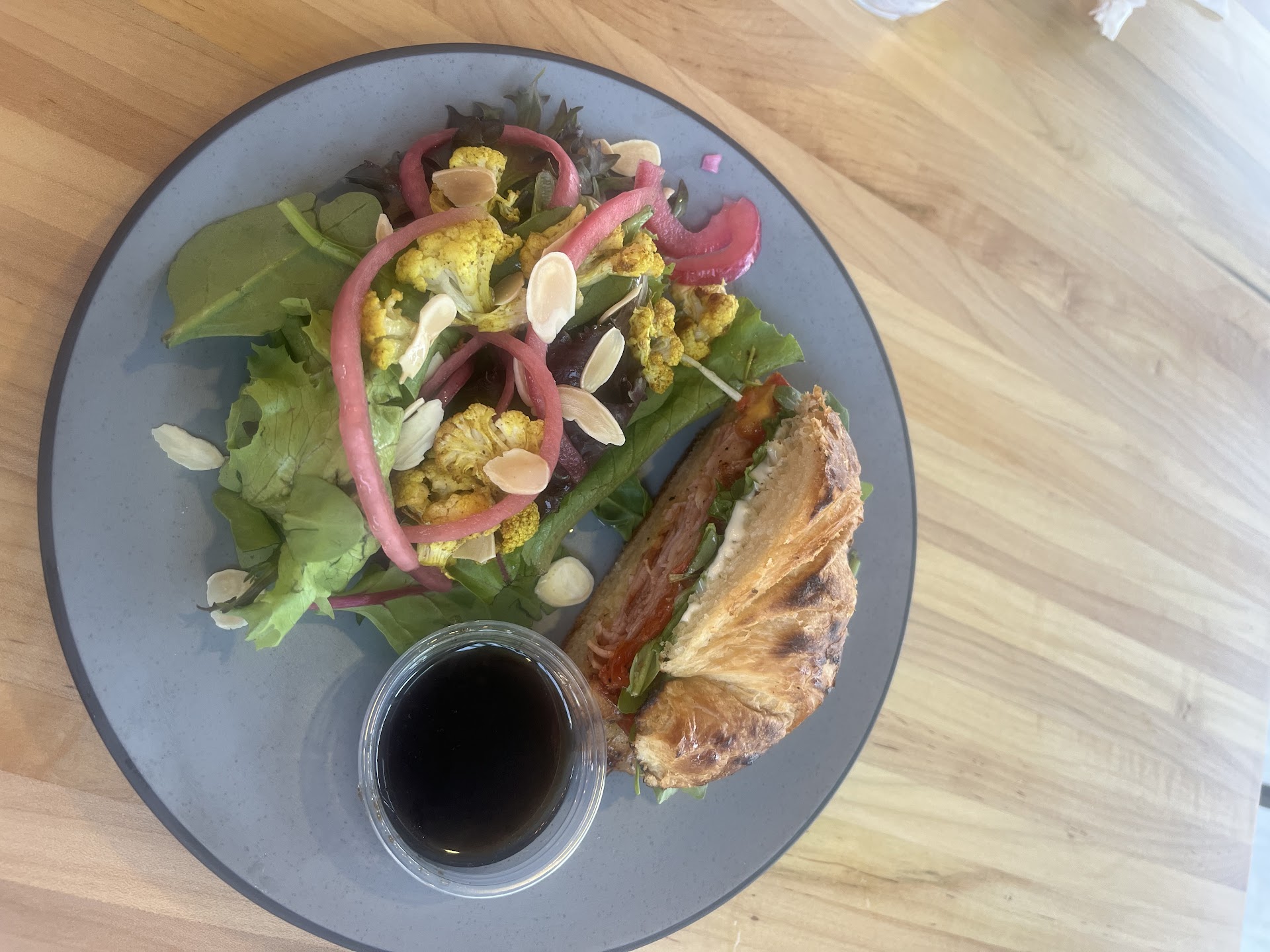Read moreLove the vibe in this restaurant and the light-filled space! The food is amazing. We shared the Croissant Sandwich (Thinly sliced smoked ham, crème de brie roasted tomato spread and arugula on a crisp fluffy croissant), a fresh fruit side, and their signature BlueBird house salad - too die for! We're planning an event next month and are so glad we found them that we decided to have them cater it. A plus - Parking is around the corner, so it's...