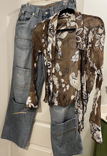 Today they hosted he Cape Fear Vintage Market. The Vendors had an impressive collection of clothing, accessories, and unique finds from various eras. I picked up a pair of ENYCE wide leg jeans from Brielle Starr Curations and paired them with a beautiful KAELYN-MAX brown and gold blouse from The Salvage Hound.