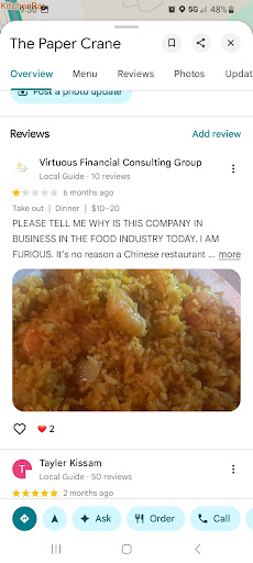 Read moreI can say that I have driven 6 hours JUST to eat food here. I have been to China town, NY many times and the food here tastes just as good. Everything is cooked to perfection. They really know how to cook with flavor here. The cook is masterful at blending flavors so your pallet just explodes from all the tastiness. I recommend the Garlic chicken. It is nice and spicy with tons of garlic and lots of different veggies. I've never had such soft chicken in my life either. The crab ragoons are also a favorite with everyone; they are sweet and delicious. We have also had curry chicken, house fried rice, coconut chicken and shrimp, and shrimp with lobster sauce. The were all great.