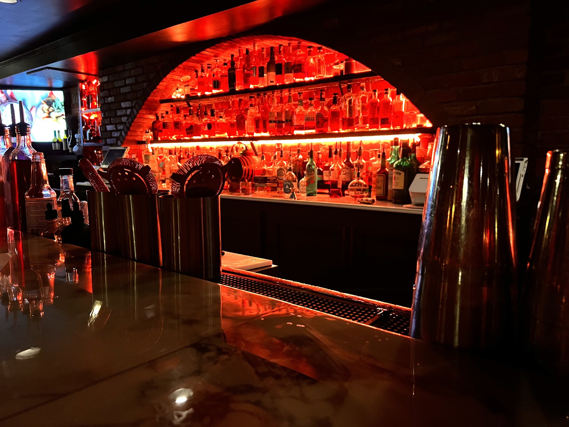 A soft breeze tussles my hair and the sound of gentle rain patters around me. "Wilmington weather..." I sigh, pulling my suede blazer together in a wistful attempt to stay dry, "With this deluge I'll be having a drink one way or the other." Glancing about my eyes alight upon a small sign perched just out from an overhang already keeping dry a man at a small wooden podium. "Underfront", I read to no one but myself and the increasing rain. Strolling with purpose now and for the sake of suede, I ask the man for enlightenment about this "Underfront". Looking up with a warm smile he tells me of the wonders below and beckons me through the now open door. Immediately the rush of warm chatter, the clink of glass, and the sound of soft music greet me. A stool at the bar calls to me and as I sit looking about, taking in the comfortable rustic décor with hints of industrial and a sprinkle of modern, a soft voice beckons to me. "Drink?" she queries. "Killer Bee", I reply. Before I finish taking in the room a beautiful cocktail is presented with flair and fervor. A sip.... a contented sigh.......