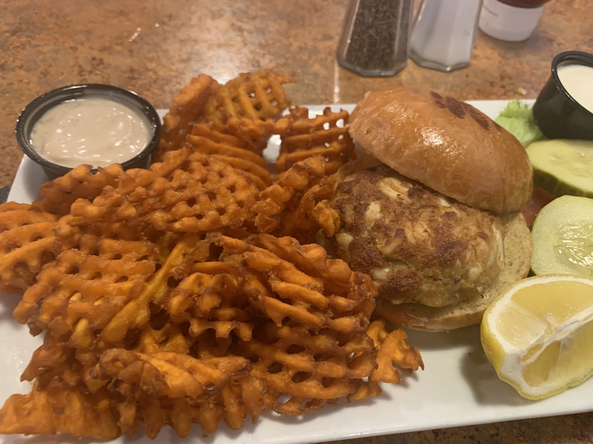 Read moreI’ve only been twice now. I will say i will continue to go because one the staff members I’ve come in contact with have been pretty decent. Rick was awesome excellent service! The food is nothing to go raving about but i like it because it’s good enough, everything I’ve had was decent. Both times I’ve stopped in was after doing the walking trail so I’m usually starving and winded. So the great service and quick service is much appreciated. The first time i ate at the bar had the chimichurro steak (sp?) mashed potatoes and asparagus. Steak was decent size fresh. Everything was a little bland but fresh and i didn’t mind i literally didn’t care just was hungry after my walk. The bartenders one older white guy maybe 40’s and black guy 40 ish i think seemed nice very professional checked on me. Today i stopped in again after my walk. I tried to try the place next door but was a 45 min wait so naturally i went next door to Timothy’s and was seated right away and was able to order. I had the crab cake sandwich with sweet potato fries. Definitely enjoyed the sweet potato fries with the cinnamon dipping sauce. The crab cake was good to me. A little on the small side the buns were bigger than the crab cake but it was seasoned well and definitely lots of crab meat without the fillers like other places so i would definitely get that again. I sat outside first but the bugs and wind sent me inside. More so the wind the bugs were your typical normal things. Honestly if you know you know. Outside eating has it perks most days. Normally i like eating outside but it just wasn’t warm enough for me. Menu and napkins went flying off the table. The tables outside could use a good cleaning. The inside is like every other restaurant could use a nice thorough cleaning but looks decent enough. Like i said it’s a good spot. It gives me good ole local family friends style hanging out after work, dinner with the kids, or just hanging out after walking the trail. It’s a decent place. Bar seating, dining in and outside dining. It’s on the waterfront nice views plus a lot of other spots don’t open until 4pm around there so I’m grateful Timothy’s is there. I’ll definitely be a...