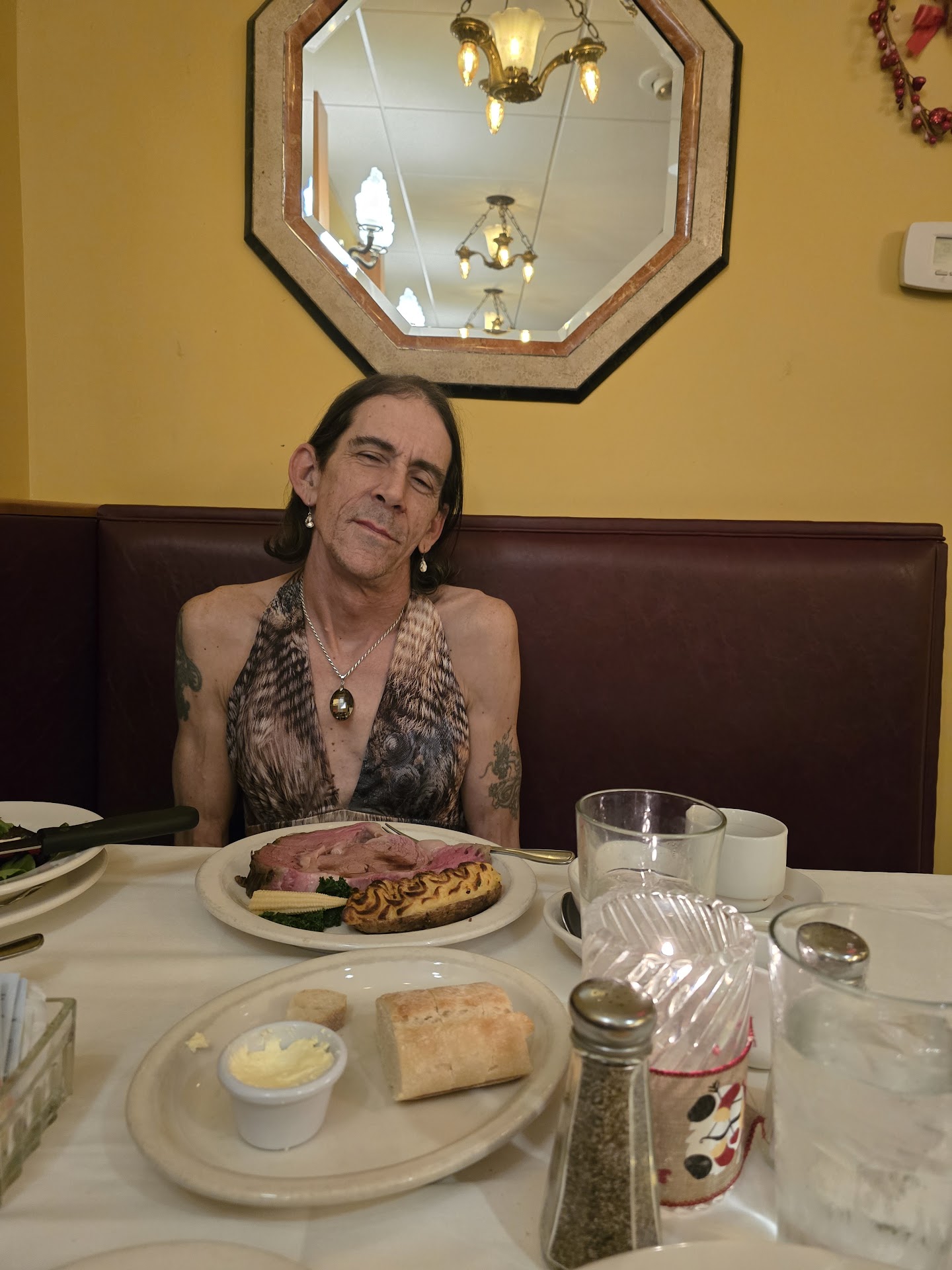Tonight was very special. The last time we were there, it was a 28th anniversary celebration. This time was a last hurrah before the wife starts chemotherapy and radiation tomorrow. She ordered the king size prime rib, and I got the seafood Tuscan pasta. Once again, outstanding quality meal. This one was HUGE shrimp and crab chunks with spinach in a blush sauce. Oh, and the appetizer? Bourbon meatballs? Get your own or else you will find yourselves fighting for the last ones.