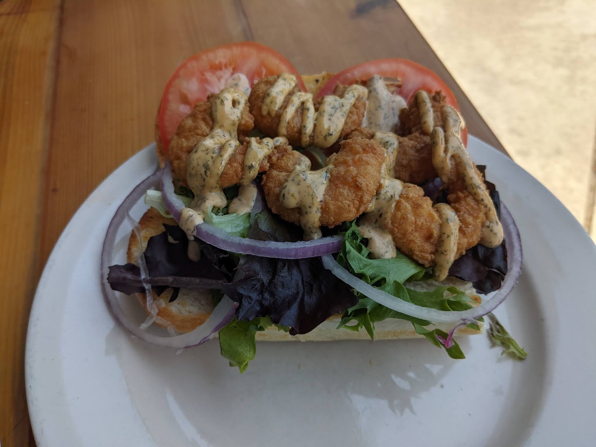 (4.5 stars) Capacious, comfortable, and convenient, Wrightsville Beach Brewery made for an ideal back-from-the-beach lunch destination. There was plenty of seating inside and out (we opted for the latter), and service was friendly and attentive. The biggest draw here, however, is the menu as both food and drink selections are strong. The former packs everything from burgers to seafood to some rather creative pizzas (a short rib, a crab cake, and a po boy were among the offerings) while the latter offers up a nice assortment of house taps and a few cocktails.