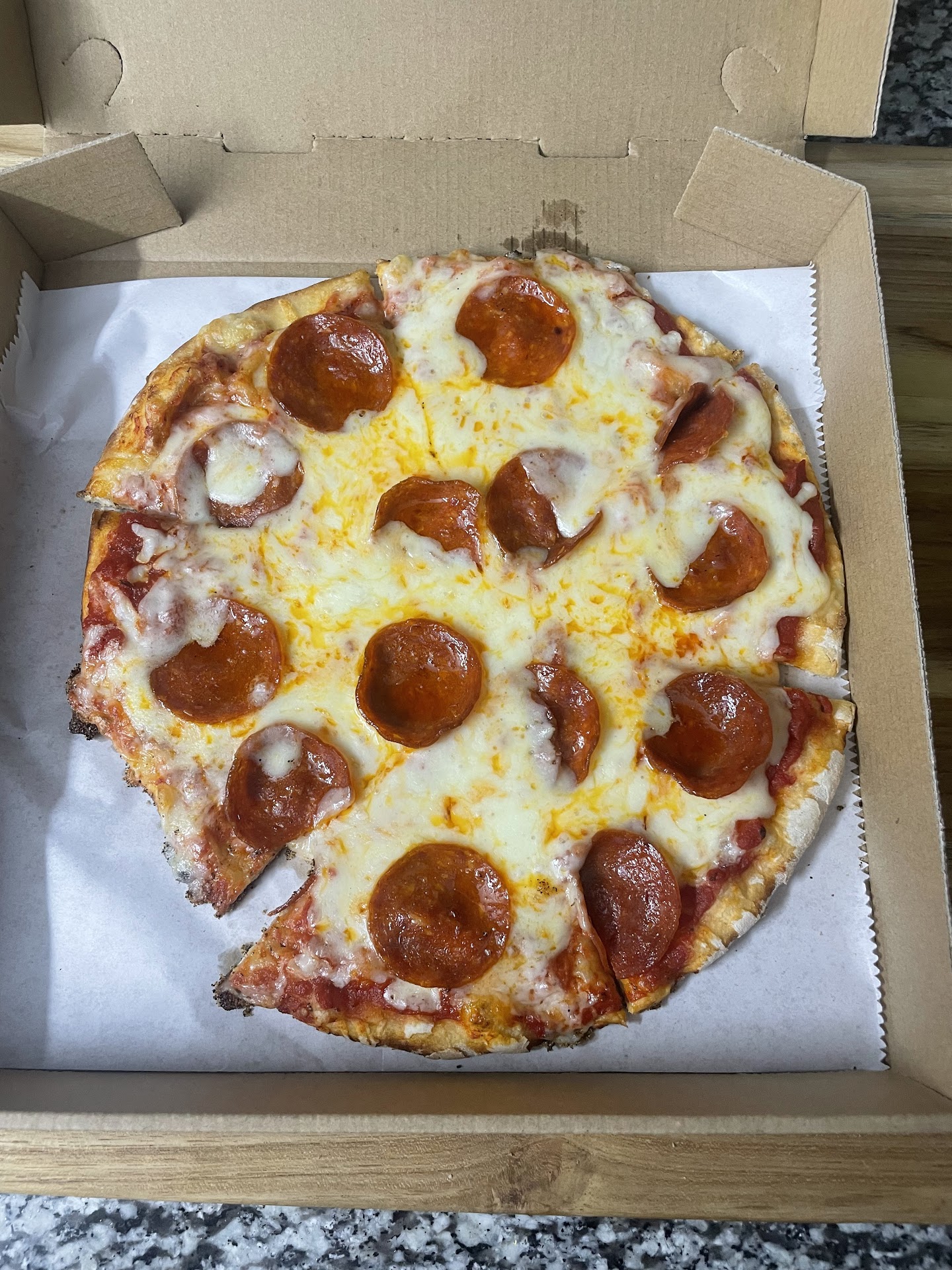 A wonderful experience with the Wilmington NC store on Oleander. . Im writing this because the team at Your Pie really understands customer service and they deserve a shout out. After struggling with Door Dash’s app and not being able to add a topping to the build your own pie, I tried adding green peppers to a pepperoni pizza. DD just wouldn’t accept anything so I called Your Pie directly and Paul tried to help me get through placing my order. The app was definitely messed up but I placed my order with the choices being as close as the app permitted. Paul kindly agreed to add green peppers to the pepperoni pie and all was good. An hour passed and the phone rang. It was …. I think he said Matthew, and he was calling to let me know that Door Dash had not picked up my order yet ….but he called them and they said they’d send someone over immediately. In the meantime, Matthew was having two fresh pies made. When the order did arrive there was an extra pizza included and two warm cookies. Matt did say he was going to send the extra pizza along and we could just put it in the fridge and eat it tomorrow. The cookies were a bonus! The pepperoni/green pepper pie was delicious but the star of the show was the pepperoni hot honey pie with peppadew peppers. Nice fresh crust with a bit of a crunch enveloping each tender, chewy bite. Sauce tasted like fresh tomatoes and the balance of toppings was perfect (on both).