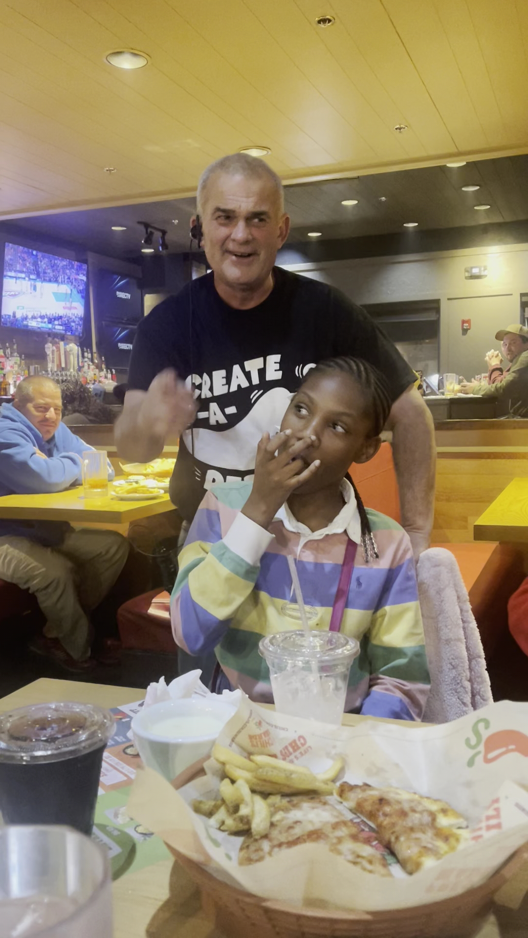 Third Issue: Waitress brought out nachos (other teen entree) with meat on it. The menu says nothing about it coming with meat. This turns out to have been an order error on her part.