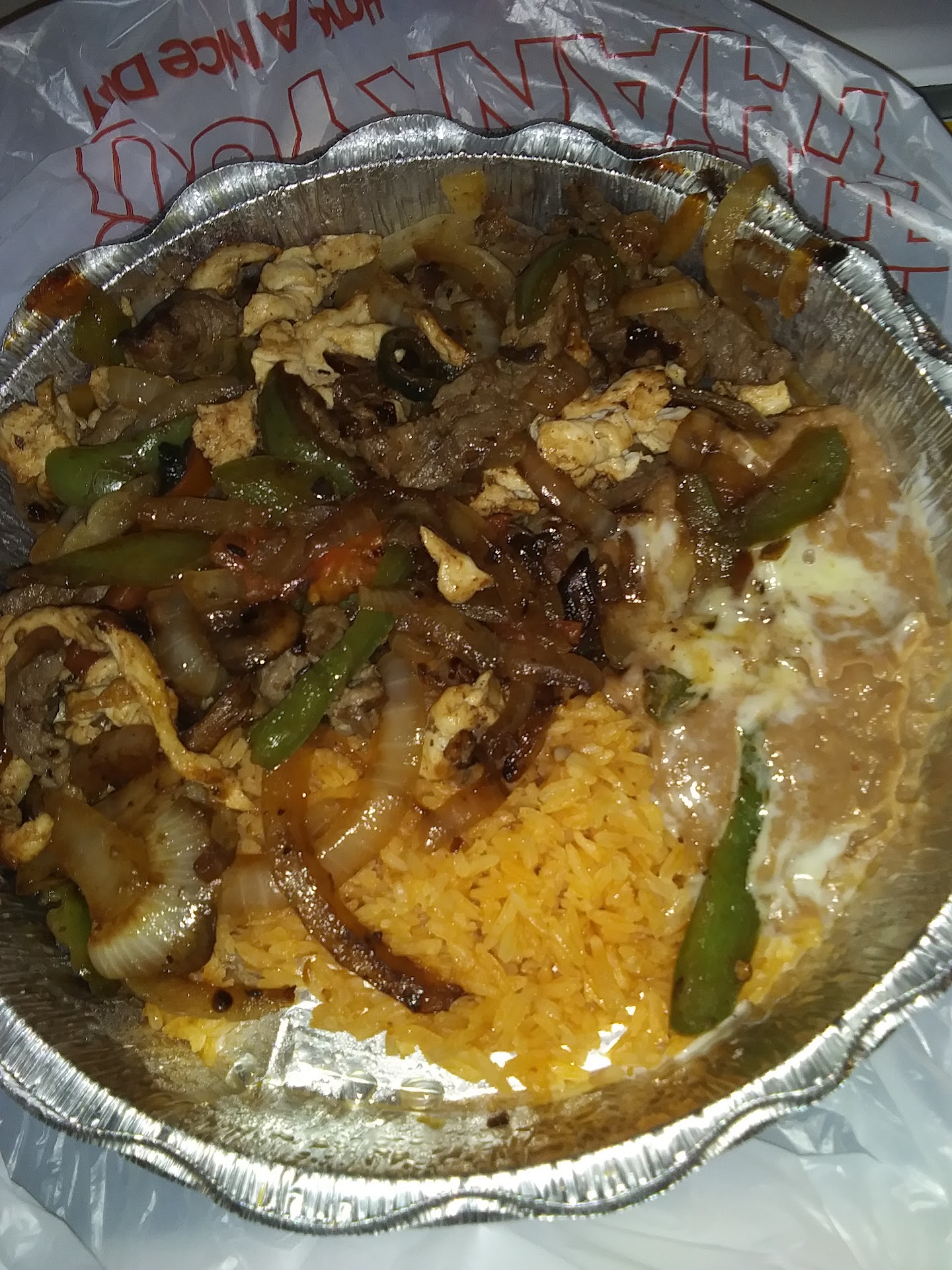 Read moreI recently got the Texas fajitas to go on a Saturday evening. They quoted me 15 minutes and it was ready in 12. The food is always delicious. Me and my husband usually get the El tapatio for two and have the entire second serving left over the next day, and because it is served to go in an aluminum tray, it is easily reheated in the oven. The pollo Sonora is also great. I order it with jalapenos added. EDIT: 7 MONTHS LATER AND THE FOOD IS AWFUL. THEY SKIMP ON EVERYTHING AND FOR THR LOVE OF GOD DO NOT ORDER ANYTHING TO GO BECAUSE THEY WILL FORGET PART OF YOUR ORDER, GIVE YOU ROOM TEMP CHIPS, SMASH YOUR FOOD, AND WHEN YOU GET HOME AND REALIZE THIS- AND THEN CALL TO COMPLAIN THAT FOOD ITEMS ARE MISSING THEY LITERALLY SAY "WHAT DO YOU WANT ME TO DO ABOUT IT?, IT WAS ONLY X AMOUNT OF DOLLARS" so im just supposed to let them keep money I paid to them for items I didn't receive? Look at my images of how they smashed my order, put no cheese on the salad and gave me less than half of the normal amount of rice and beans. I'm underwhelmed to say the LEAST. Will not be coming back here to get ripped off 5 different ways in a...