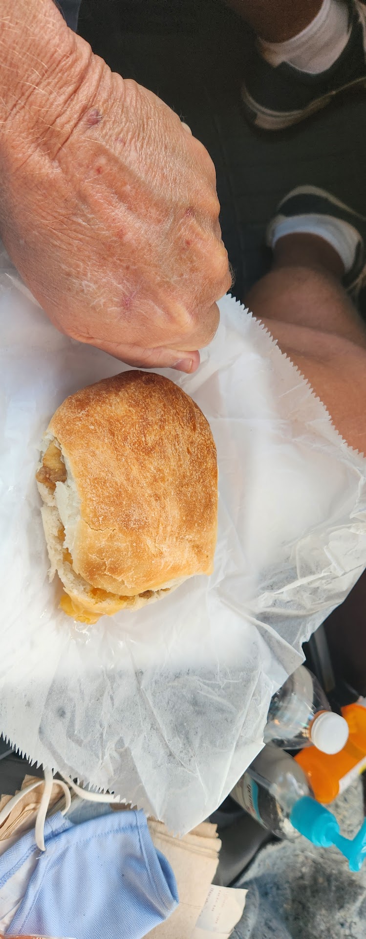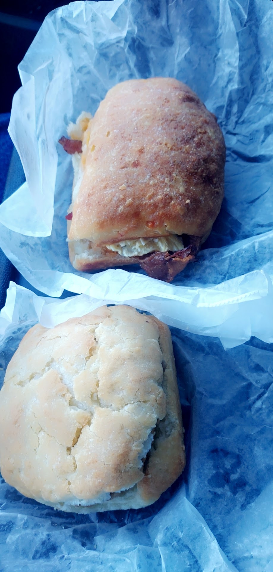 Read moreWell we live and travel on our motorhome. We watch alot of traveling shows on TV and we had seen Flo's Kitchen on NC Weekend and thought that it would be a place we would like to try. We are originally from Norfolk Va area , so we come home in April thru May to do our dr appts. This yr our plan was to go to Nashville Tn. So we planned to stop and stayed last night in Wilson, got up this morning early and went to get us some biscuits. The girl taking orders outside was so sweet. Great personality. The line hadn't got bad yet so she said, so it didn't take long to get our order. Welllll, we were a little disappointed. I was raised in NC. These biscuits were big yes, but they were very tough. I guess they have to be to hold all they stuff in them. I got a cheese biscit & a cheese biscuit turned into a hobo biscuit. The cheese on the plain cheese biscuit wasn't melted but just a little. I wouldn't call it crispy but crusty (hard). We were told they were right out of the oven (new). The cheese didn't stretch like the lady said in the video like I've seen our country cheese biscuits do. Cheese won't melted thru. It was the right cheese, just not melted. If it had stayed in oven anymore would have been to dark. Would have been good with some butter brushed on it maybe. Maybe these were right for the area and what people in area grew up with. I'm from northeast NC. Butter 'em up some on outside and make 'em a little greasy. Lol Add a touch of Paula Dean...