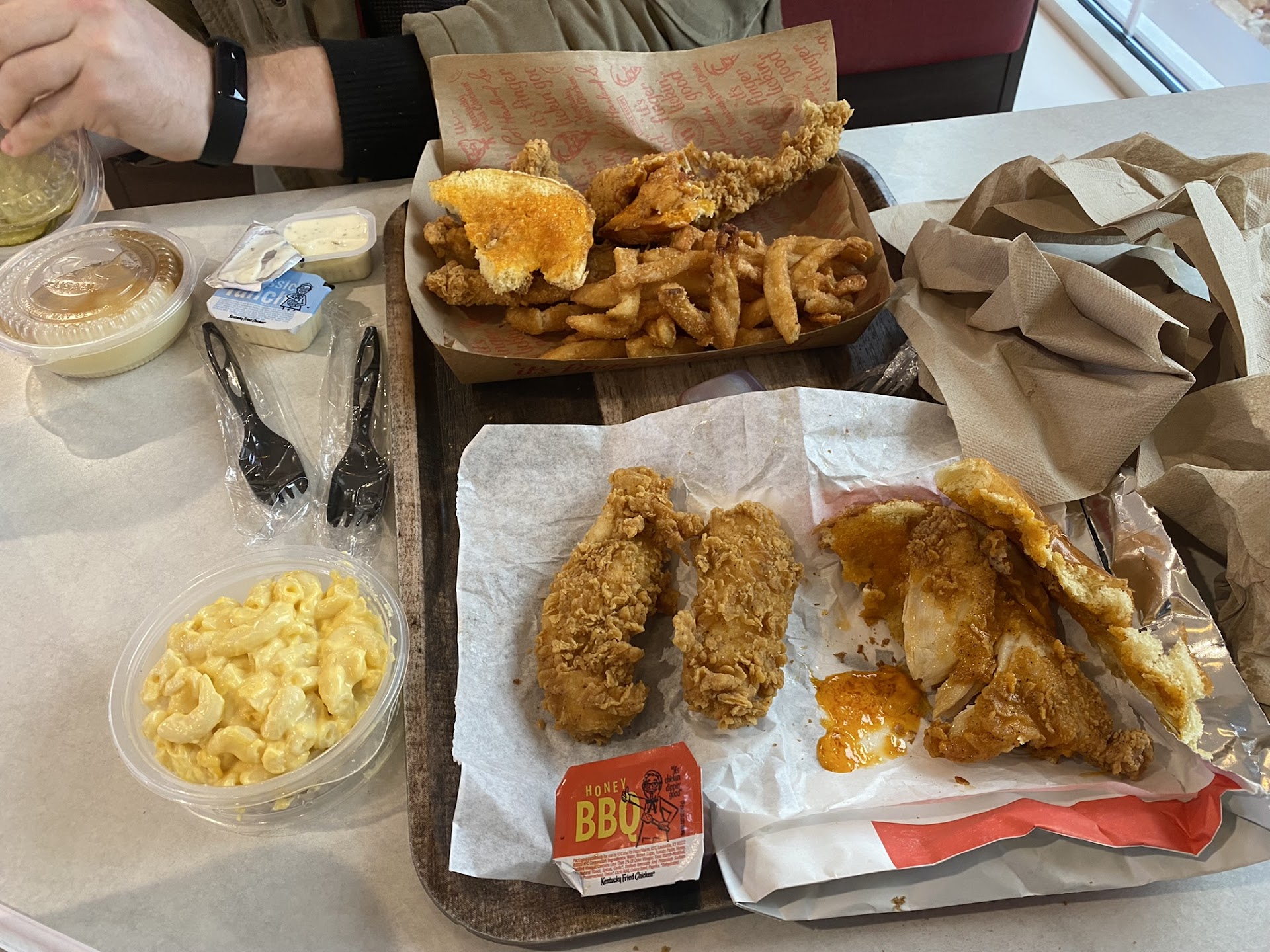Ā Ā Ā Read moreI haven't had KFC for the longest time. So on 02/13/22, we stopped here for lunch. The cashier was nice. I ordered the spicy chicken sandwich with a side of mac. My fiance ordered chicken tenders with fries and mashed potatoes. We split everything. The chicken sandwich with their signature spicy sauce was delicious. They changed their fries or at least I don't remember them being streak fries. I think last time they were potato wedges. Their new fries are better. The mac and mashed potatoes were decent. The chicken tenders were alright. The dining area seemed cleaned. KFC is stepping up. I would def come back, and I totally recommend the KFC spicky chicken. It's not as spicy as chickfila's but I think it's...