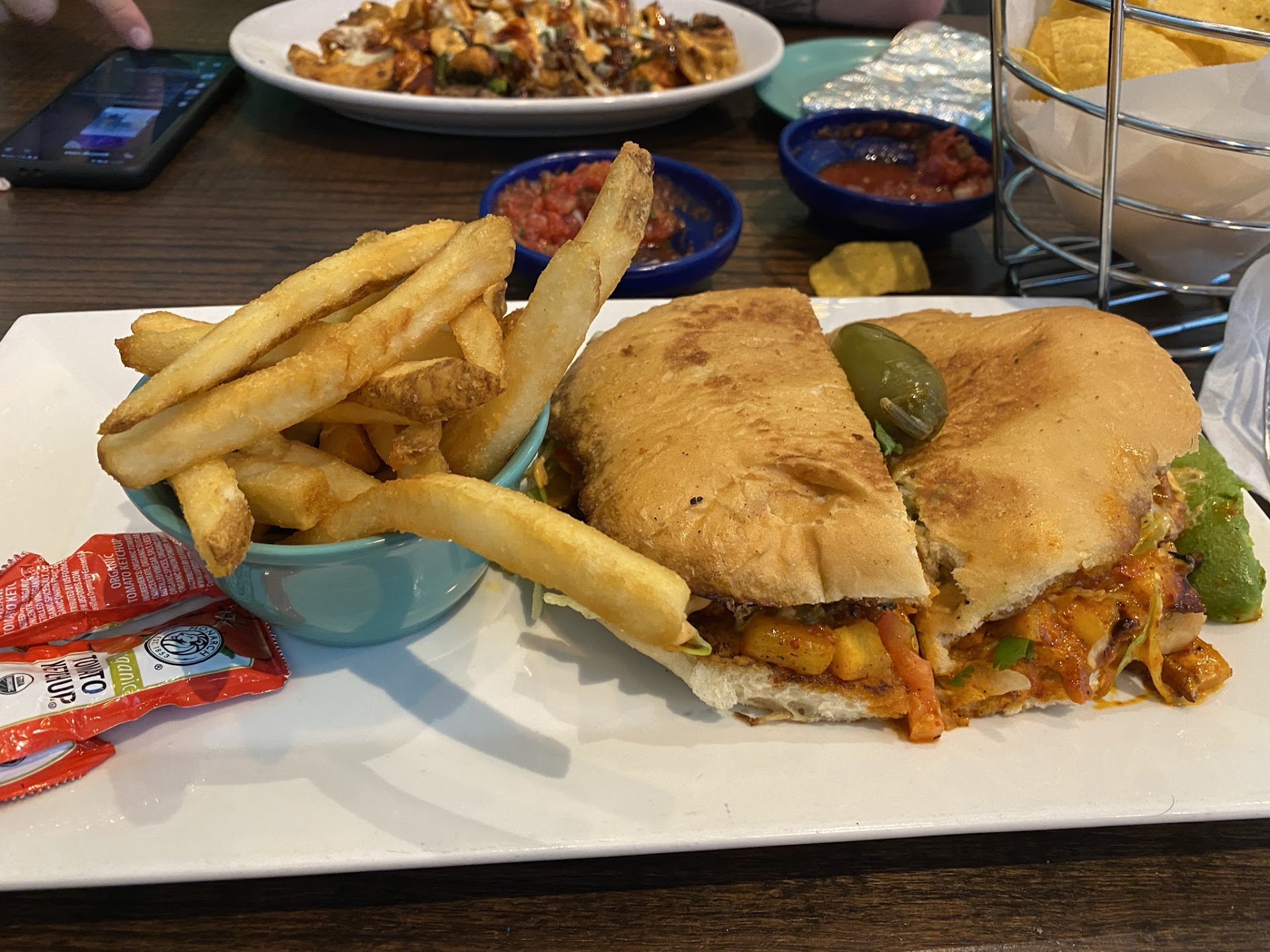 I been here a few timesbefore, just never wrote a review before. The first couple of times, the rice was always too salty and the beans weren't good (this was more than a year ago). I wouldve probably given them a 3/5 at that time. I won a gift card to eat here so we went on 07/17/21 during lunch. It looked a bit busy but we were seated immediately. I got the al pastor torta with fries. My fiance got the acp but with steak, shrimp and chicken. The chips and salsa were banging. We got our food just when we were done munching on the chips. My torta was pretty good. Huge, I could only eat half. My only critique is that the torta bread was already starting to sog bc of all the sauces. I tried the rice from my fiance's plate. It wasn't salty like how I remember it last time. Our server was a young male. His service was okay. Only checked on us once after we were done eating. He seemed shy so he mustve been new. I would...