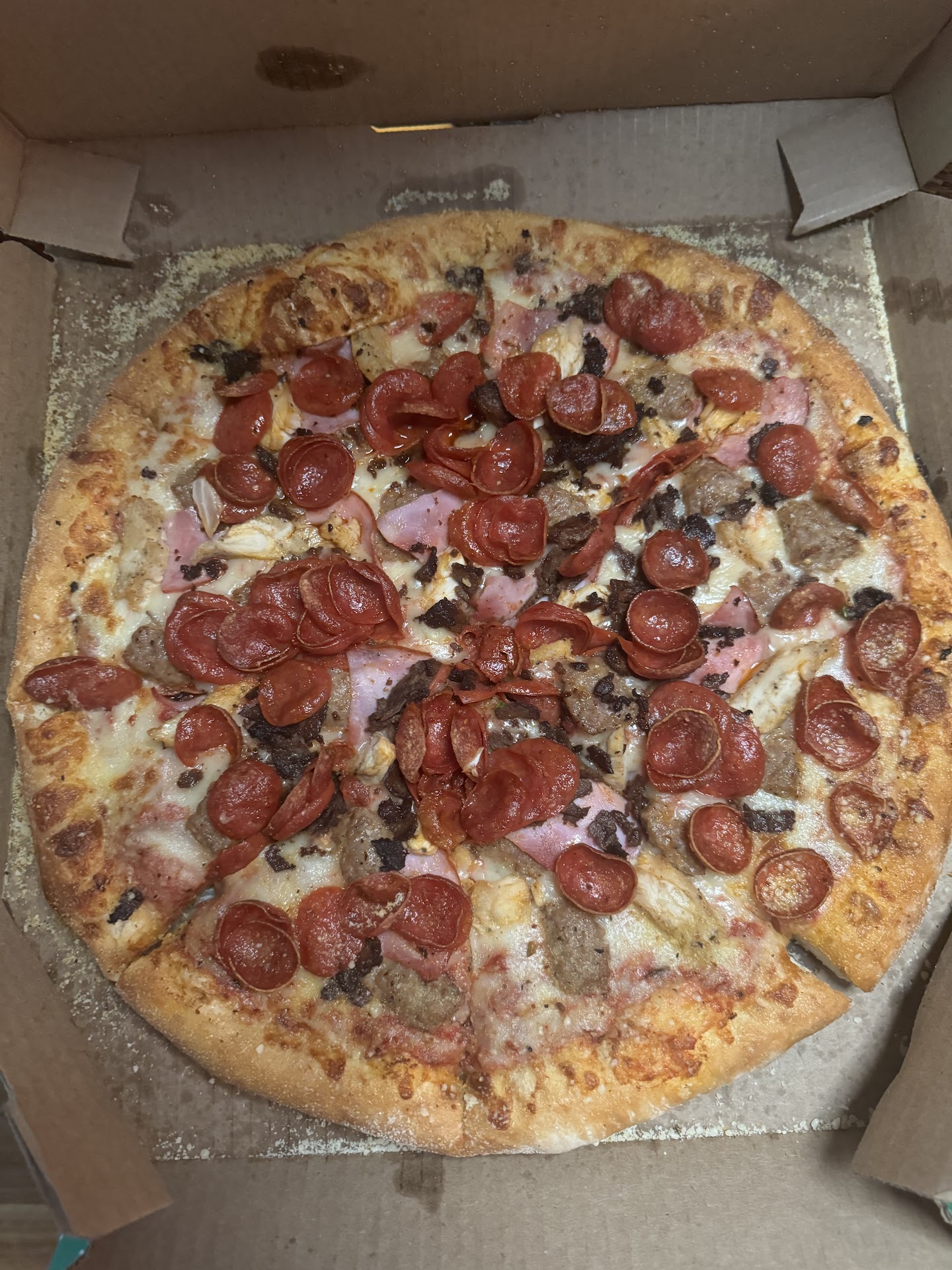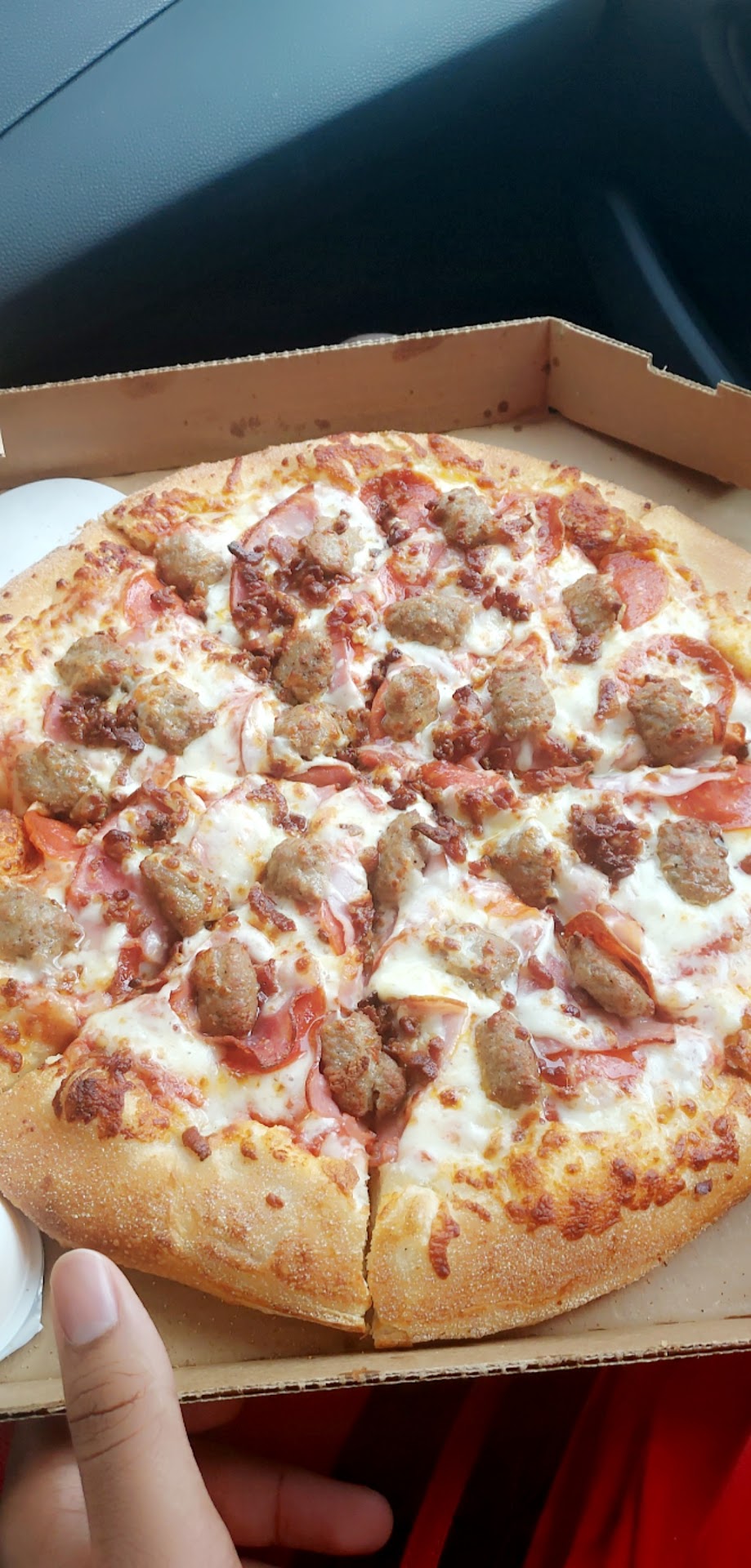 Read moreThe food here is usually pretty decent. Better than dominoes and most of the other fast food places. This past time however was really rough. Both pizzas were incredibly greasy, to the point where they soaked through to the cardboard boxes completely. Granted, one of the pizzas was an Alfredo, so we did put that box on top of the other one. That, however, doesnât explain why a ham and pineapple with regular sauce was so greasy that itâs soaked through the cardboard box and onto my wifeâs shirt and pants and hands. All in a matter of a five minute car drive.