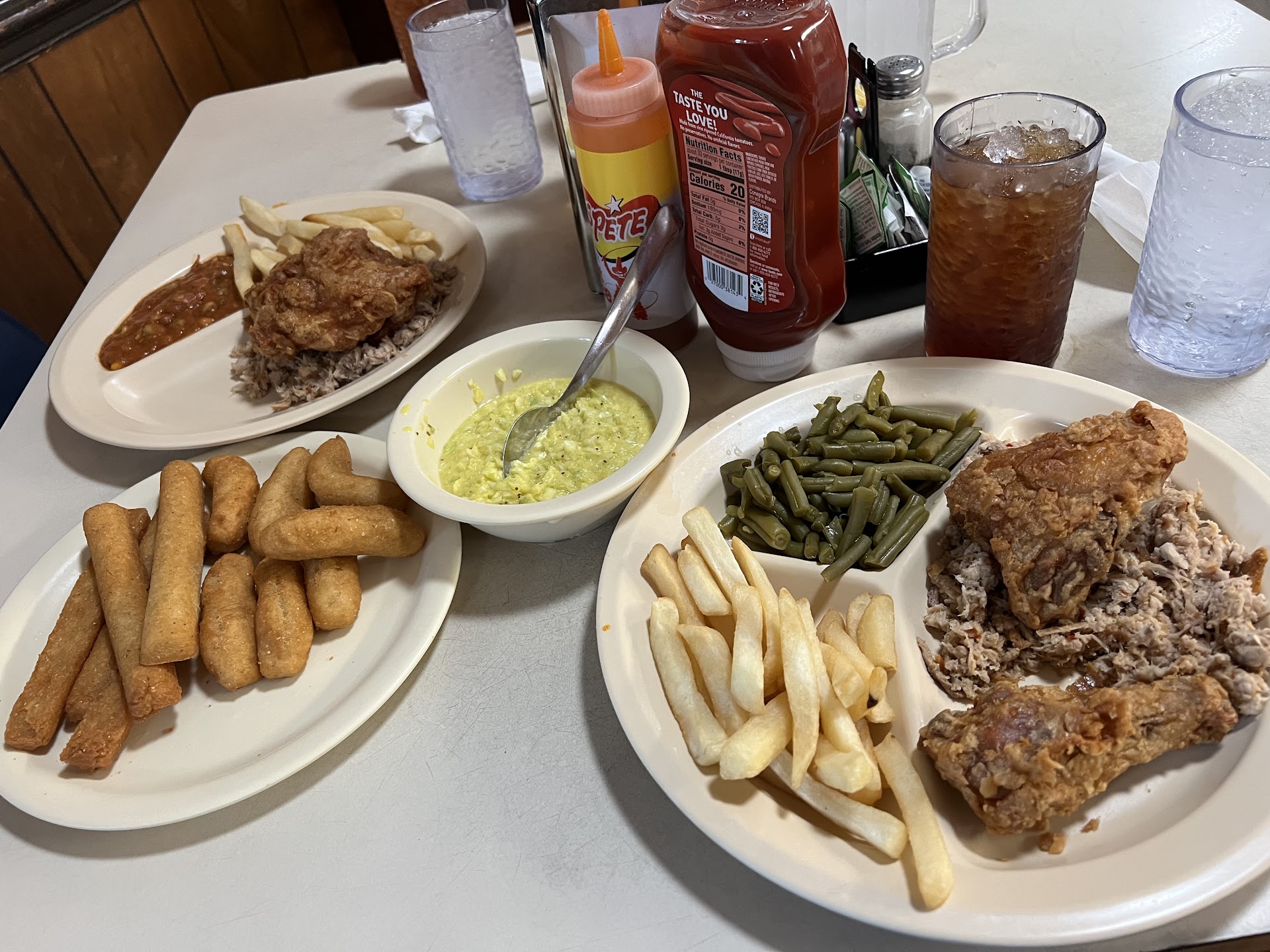 Read moreHad a random trip to the area and looked for a good bbq joint to eat at (hey I love good BBQ and I know Eastern NC BBQ is some of the best). Saw the reviews for this place and it did not disappoint. Very simple yet very well executed Eastern NC BBQ. Went in and saw the menu, and thought this is making it easy on me, I like all sorts of sides that typically come with bbq but their very simple menu made me not have to choose (the only thing I regret is not getting a bowl of Brunswick Stew on the side to try, in addition to the string beans). The bbq itself didn’t need anything, the meat and smokey flavor together were perfect alone, but add the Eastern NC bbq sauce and it made it that much better. The string beans (I grew up on country string (green, snaps, etc) beans and I will call someone out when they don’t stand up, and believe me these do. Fries are fries (maybe I should have went with the boiled peanuts, haven’t had them in forever). The slaw, that is truly what stood out to be different, but not in a bad way. I grew up on vinegar based slaw, but have never had a mustard based slaw. The bite that the mustard added truly makes it next level. The corn sticks and hush puppies (they don’t say you get hush puppies but they were there along with the sticks), well they were run of the mill but good nonetheless.