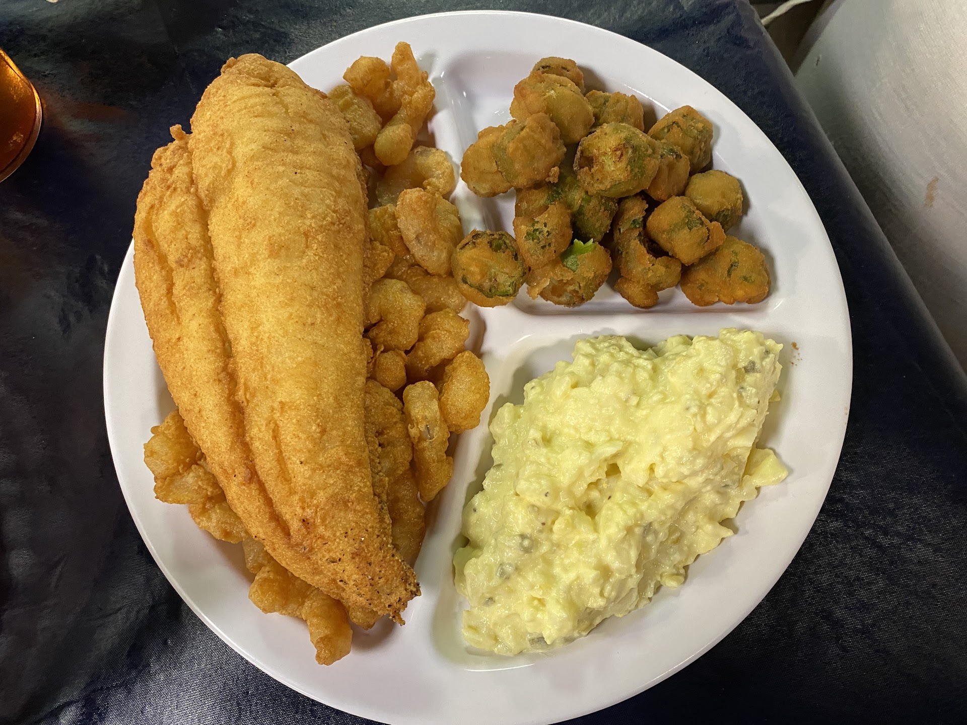 Read moreHave read and heard a lot of raving reviews about this place and after my appt seeing a professional specialist in the area, they said they’d heard lots of good reviews from locals in the area. I decided to check it out. I was not disappointed! Seafood was absolutely delicious! I ordered the 3 fried seafood combo of flounder, shrimp , & oysters with sides of FF and slaw. My guest ordered the 2 fried combo of flounder and shrimp with sides of fried okra and potato salad. Hush puppies were served with Honey butter but they also have regular butter on the table along with other condiments. Other than the slaw not being my fav of the sides, rest of the sides that we ordered were good. Our food was served hot and not warm/cold. Waitress brought some warm shrimp cocktail sauce to our table upon request. Friendly attitude. Clean. Not noisy. Public restrooms available. I saw where one review stated there were no restrooms available…smh Their seafood is fresh. They get 2-3 deliveries week. Their food reminds me of the Calabash style from the coast of NC and SC. They have a senior discount for the 2 combo plate, regular $15 for $13.95 They do take calls for “takeout” orders but no online orders. It’s a family run restaurant. I'll definitely return. Their seafood is that good! I'm glad to know there's a local restaurant in the area that sells seafood "Calabash" style!...