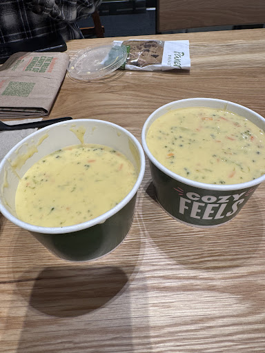 Waited over an hour for an order that was placed IN store. So much of a delay that the account used to order was credited automatically by the app for the long wait time. Being a newer location, I understand that they are busy, and had it just been an extended wait period I would have understood. While standing at the front waiting for my order to updated, one of the employees kept coming from the back to check on everyone EXCEPT myself. She asked about 3 other people who had not only ordered after me but were also lower on the wait list other names and orders to update them but skipped over me each time she did so. Then when I finally get my order one of my 2 broccoli cheddar soups was noticeable less filled than the other. I brought both containers up to the counter and just asked for my other soup to be properly filled; the cashier came back with who I assume was the manager who proceeded to tell me the soups are āpre portionedā and that it was filled to the correct level. I then proceeded to remove the top from the other container to show the difference, at which point all the employees just kind of stared at each other for a minute and just told me that the more filled one just have received an extra scoop and did not even attempt to remedy the issue. So which is it, is the soup pre portioned or manually scooped. Not worth the wait, I also heard other customers complaining about consistency issues and low quality food. Would not come back if given the choice. Poor service, and poor quality control, both of which are unacceptable in the...