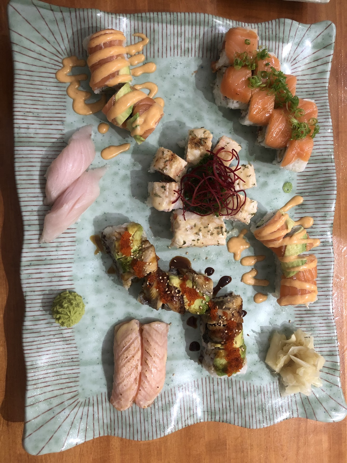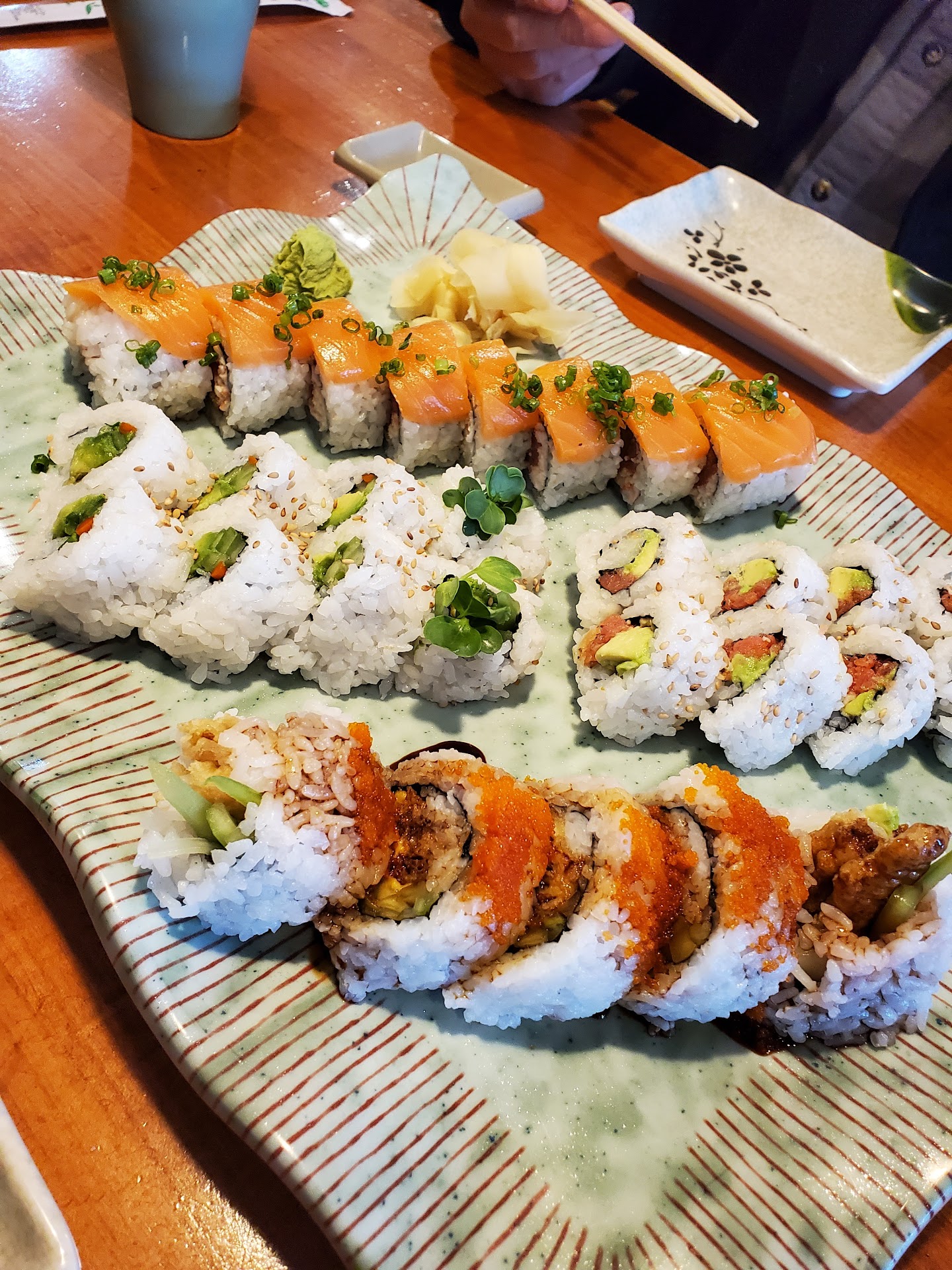 Ā Ā Ā Read moreWe decided to check this place out given the high reviews. We love sushi and usually try different locations. We went at a late afternoon time so it wasn't busy. We were welcomed and promptly seated. The service was kind and attentive. The atmosphere was chill. We ordered two jasmine hot teas, edamame, a veggie roll, spicy tuna roll, spider roll, and the Samurai roll. While they do have a large selection of rolls, there's nothing really unique or interesting about them. The tea was just a bag from the Stash brand. We prefer loose leaf or higher quality teas typically served at other places. The edamame was perfectly steamed and salted. The sushi was very disappointing. The spicy tuna had really no flavor or spice and I usually don't handle much heat. My partner said the spider tasted off and was worried the crab was spoiled. The veggie and Samurai rolls were just okay. Not a fan of Kikkoman soy sauce but that's just me so take it with a grain of salt. I can't justify the quality for the price. I will absolutely pay $15-20 per roll for quality sushi but this isn't it. Total was about $55...