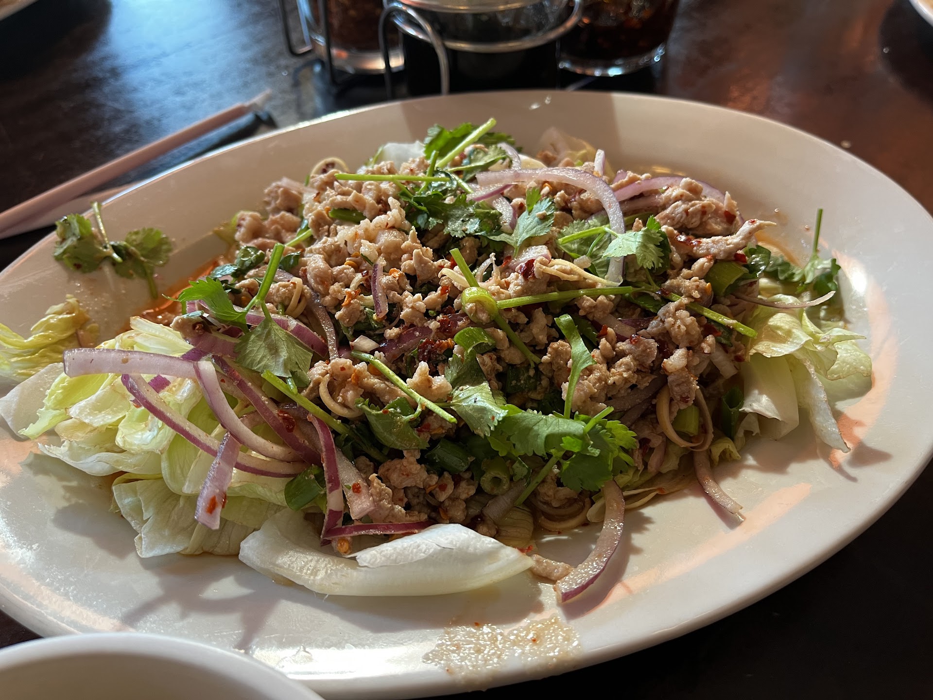 The place could use a deep clean, it seems there is random clutter around and a whole side room that is rarely used and used to store stuff, even though its clearly for dining. kinda takes away from the atmosphere as well as some really poor paint jobs. This establishment doesn't have air conditioning or heat, during the summer or winter. They bring in a stand alone AC unit to cool the place and fans and it's really unsightly. During the summer they have no heat and bring in heat lamps that are meant for outdoor dining which becomes unsafe because the space is tiny and if your sat or standing anywhere near one you have to be careful not to bump into them. It's just sort of unsightly and messy in there, and when I went to pick up my 72$ order, my food came in cheap boxes that they did not seal shut, they stacked them ontop of eachother unsealed, the to go boxes where collapsing in on eachother and spilling out of boxes into bag. And food was in direct contact with bottom side of box stacked ontop of it, this is unsanitary and a food safety concern considering we have no clue what and where the outside of a togo container has been in contact with. Once food is cooked to temp, nothing or no one should be coming in contact with food as this can create bacteria which leads to food born illnesses. This is unacceptable, if you have to cut corners to keep your business running and purchase the cheapest of everything including to go containers, and have to bring in ACs and patio heaters, you are not operating safely or with integrity. They seemed like they updated the floors or something, but the place instantly smelled of sewage when I walked in. Idk whats going on with this place lately because ive eaten here forever because generally food is great and wonderfully large portions, but I wont put my health at risk. I called requested a refund took pictures and brought it back to show them. If my money is not in my account in 3-5 business days I will be taking further action... Mind you i've lived in wilsonville for 20 years. I have eaten here since I was a teen because I could get pad thai for 10-12$ dollars it was me and my best friends favorite place to go because it was affordable and good, they have doubled the prices and I paid 72 dollars for 3 chicken pad thai and a sticky rice. It is absolutely not worth it at this point. And now noticing that they only have one functional bathroom and the place smells like sewage, and there are multiple reviews saying the same thing, I think will be making a report, because it's becoming a real safety concern. I was shocked that people actually choose to sit and eat in a dining room that literally smelt like human waist. But sure enough there were. I hope they...