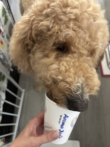 I absolutely love this place! I stop by almost every morning on my way to the office for my caffeine fix, and it never disappoints. Today was extra special because I had my dog, Bella (my 2-year-old Australian Shepherd), with me. The barista, Natalie, immediately noticed her and went out of her way to be so kind and friendly. She even offered Bella a Pup Cup—a doggie bone with whipped cream—which was such a thoughtful gesture and really made my morning. It means a lot to support a business that not only provides great coffee, but also creates such a welcoming and caring atmosphere for both customers and their pups. Thank you, Natalie and Aroma Joe’s, for starting my day on such a positive note. Keep up the amazing work—you’ve earned a loyal customer in both...