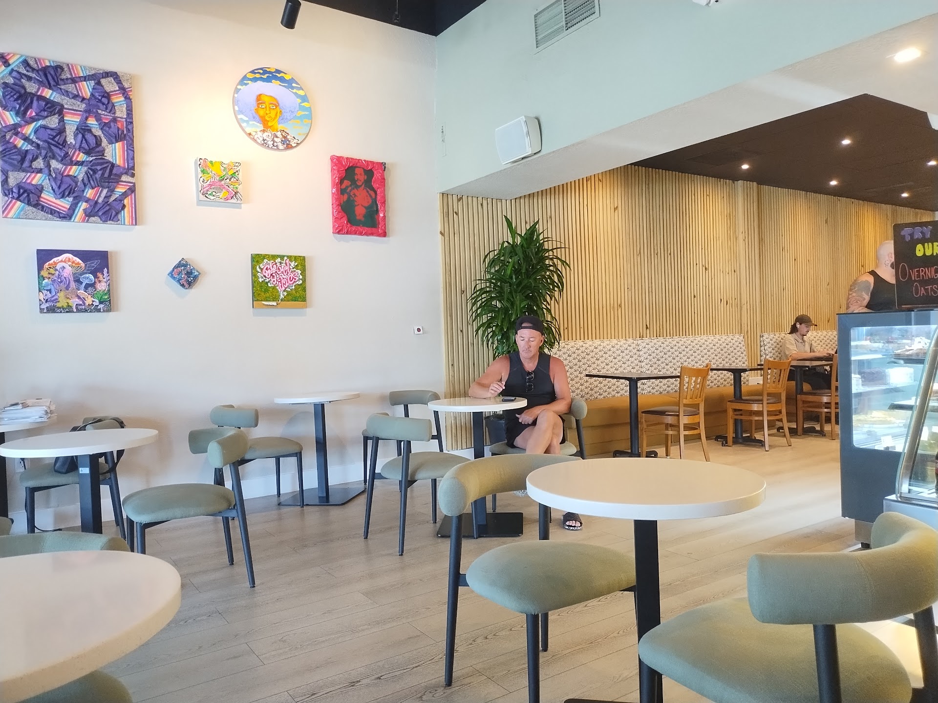 The atmosphere is relatively quiet with club music playing in the background, although their cappuccino machines can break the silence periodically. This used to be Java Boys. The new owners remodeled and added more seating. It's very tasteful and understated. You will tend to see a lot of their clientele using the space as an office. Tablets and laptops are everywhere, at least during the day. They have an area of outdoor seating, but in Florida heat, it's not used as much. For now, the weather has been comfortable, so it was full on the day I visited. In another month or so, the heat will probably be unbearable in the afternoon.