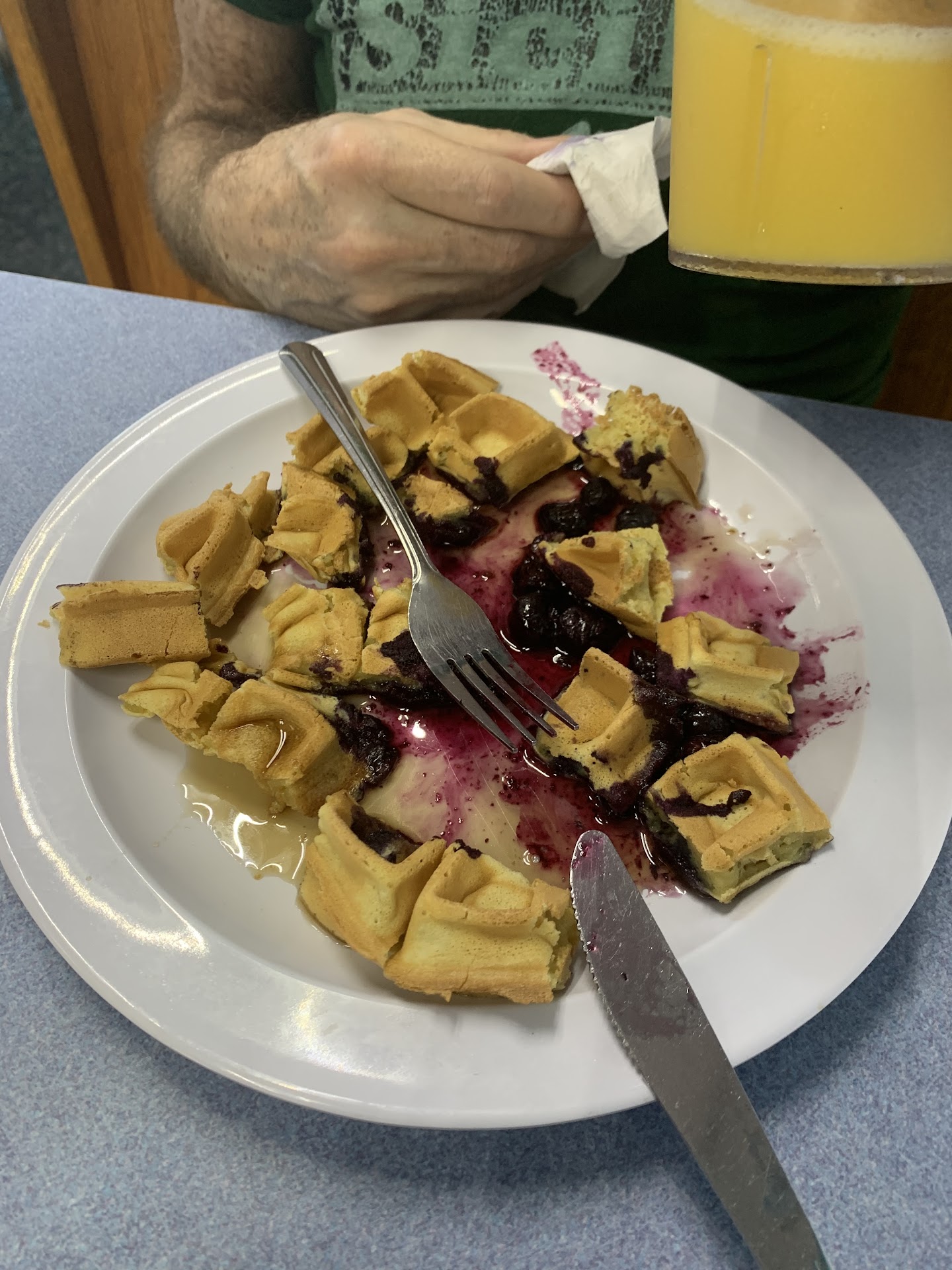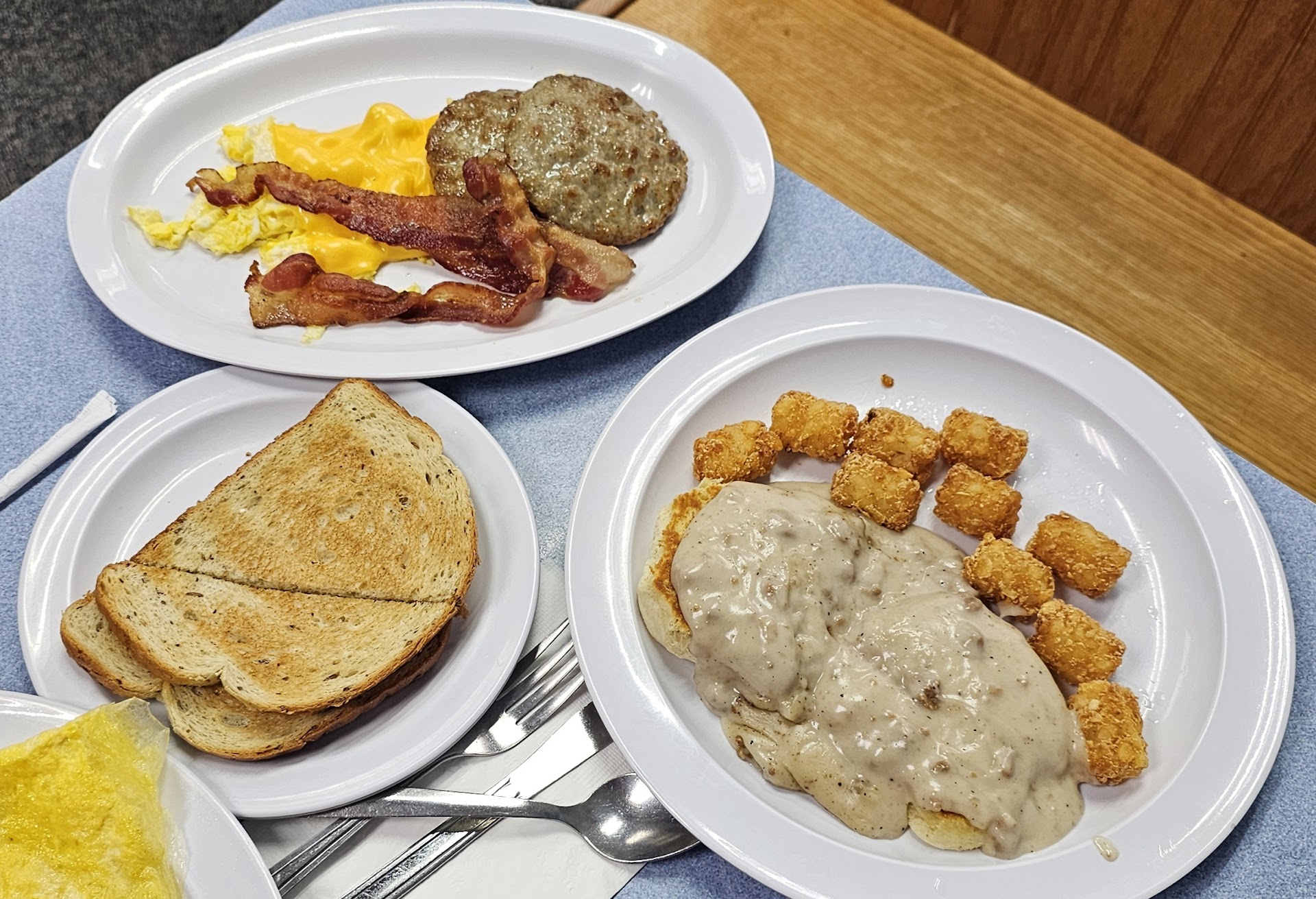 Read moreOkay let's start with the food The country fried steak was the most processed piece of meat I've ever tried to eat in my life The grits were cold My wife's eggs were also undercooked her corned beef hash with some weird mashed potato with meat kind of thing and were cold in the hash browns were basically burnt greasy potatoes Now we get to the atmosphere everybody was screaming at each other and rushing around trying to close the restaurant it was 1 hour before scheduled closing One employee kept screaming I already told you I turned the waffle maker off now it's off Then a man came in and sat down they locked the door behind him he obviously wanted a waffle so they weren't going to make him one he decided to leave he couldn't get out after they let him out the employee said loudly he can go to the waffle House and lock the door again Oh yeah I went there because channel 10 gave them the clean plate award for passing inspections so the place was really clean and the server was prompt and attentive but the food is horrible in the atmosphere...