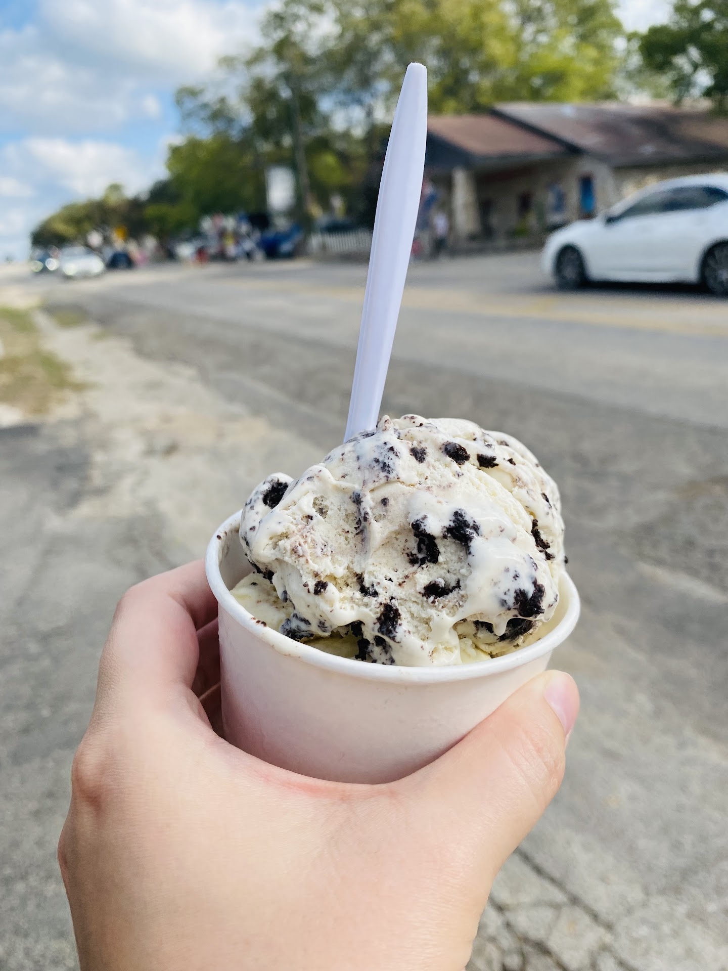 Read moreWe came here for an afternoon treat after checking out Jacobâs Well and the cute shops in Wimberley. We both got two scoops, I got ice cream sandwich and Oreo in a cup and my husband got trick or treat (KitKat, Heath in chocolate) and monster (Oreo, Heath in vanilla) in a waffle cone. We didnât get any toppings. The ice cream was rich and creamy, we loved it! The service was great as well, the girl working was very helpful...