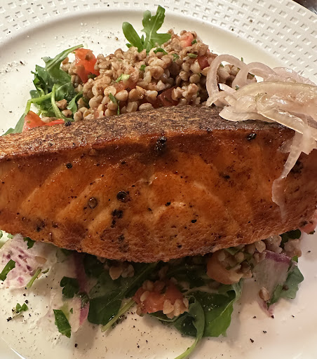 The food? Absolutely outstanding. The salmon, paired with buckwheat vinaigrette, arugula, and goat cheese, was light, flavorful, and beautifully balanced. The lamb chops, cooked to a perfect medium, were tender and seasoned to perfection. Every bite was rich and satisfying! To top it all off, we were treated to a complimentary hibiscus lemonade, which was as refreshing as it was thoughtful; a perfect, colorful addition to a flawless meal.
