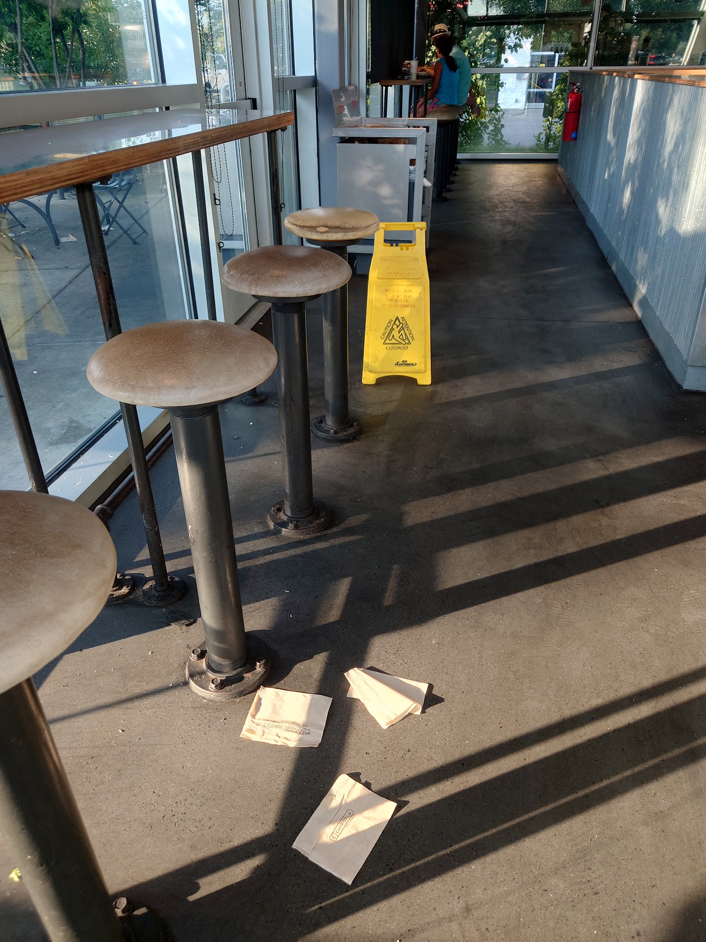 Ordered our food online and sister in law went to pick up. She gets back with our food bagged...in a double bag. I take it from her car to where we were going to eat; so far so good. When i try to pull out the first item, it is in the bag sideways. You know how Chipotle packages there togo bowls, right? So if it's sideways all the juices are gonna run out. I try to straighten it out in the inner bag only for both bags to break open from the soaking juices in the bottom and drop all our food out onto the floor!!