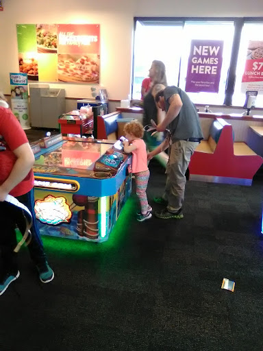 Very dirty! The handles on rides & arcade games were so filthy & sticky!! EWwW,SO BAD!... I dont mean Zfrom a childs sticky hands that day,it was old and built up on them.,Especially the lay back virtual coaster...it says to hold on which I'm sure many small children would need to.I got on it with my grandson it was gross...I got up and got us some napkins to put around them ,afterwards when I went to remove them to throw away it was SO bad that it tore it into many shreds trying to get them off...like a sticker on a window that's been exposed to 99° heat &sun for 3yrs!!.The head rests were all torn ,cracked,sharp, &dirty! Just think how many heads are on them daily! Its obvious they do not get cleaned regularly or properly,let alone disinfected. whole place needs cleaned! Also I myself were having problems with the games taking money/credits(off the preloaded cards)/ tokens and not giving them game time & taking double triple or more each time then it actually costs.These are little innocent kids chucky cheese!! They dont know or notice it...I would not have caught it myself if I went playing them with my grandchildren. Shame on you! Because I went to the manager and he kept saying it didnt..pritty much calling me a liar! I seen it with my own eyes Mr! & multiple others were complaining of it as well.Believe me I have bigger things on my mind than ripping off tokens for a few arcade games! Please!! I was very offended and it was brutally obvious that he could not have cared less ! And last but not least...So so so EXPENSIVE $168.00 for 3 small kids 1 adult to play dirty broken games for just over2 hrs.& a couple of plain basic pizza's! WISH I HAD WENT BOWLING INSTEAD OR THE JUMPING PLACE(sorry guys cant think of the name of it lol) its expensive too,but you get your money's worth and last time we went it was or at least appeared to be...