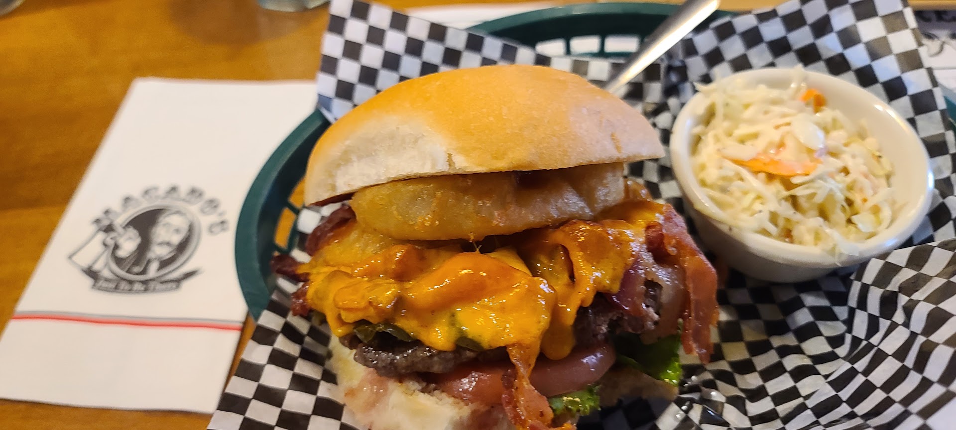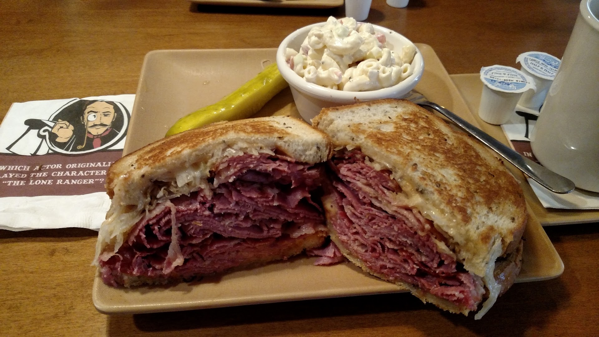 The wife and I decided to venture off and try some place new to eat. After we seen Macados menu, we decided to order to-go. I got the corned beef rueben with a side of fries, she got the pastrami with fries and our kids got pizza. Once she placed the order we made our way their. (20 min drive) I found parking in an alley and the wife went to go get the food. She waited 20 minutes to be acknowledged, waited another 15 for our food.