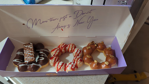 The doughnuts were so good. I live down the street and I was driving all the way to spring mountain and didnt know i had 1 right down the street. I tried a strawberry boba it was mid the doughnuts were nice and soft. The hispanic girl at the register seems like she hates her job. She put the drinks down on the counter and walked to the back of the kitchen, didnt say anything just placed them there. As I went up to get my drinks I seen they had a punch card. I waited for her to come to the front but she stayed in the back so I had to yell at her and asked for a punch card. She rolled her eyes and punched 4 times for my 4 drinks. Its awkward when she stays silent and doesn't day a single word to you. I seen they had uno cards, a chess board and games on the table. After that encounter it would be weird to hang out in the lobby when clearly we weren't wanted there. After that she went to the back and...