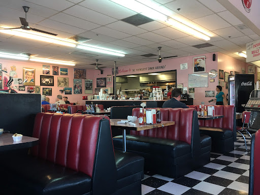 Me and my bf are here for the Viva Las Vegas rockabilly weekender and we thought this would be a cute little place to eat at. It's very kitchy with all the 50's decor. The menu is great so much stuff to choose from. We were seated right away. We were asked for a drink order as soon as we sat down. 2 Orange juices and waters. That's all we said and the busser just said ok. Then our server came and took our orders. I couldn't decide on what I wanted between the Chile Verde omelette or the Scooby-Doo chilaquiles. He helped me pick the Scooby-Doo chilaquiles. It came with steak, I ordered it rare. My bf got the ham steak and eggs with a bagel. I'm sure my meal came with a side of toast that I never got asked which kind I wanted, which was fine no big deal. Food came fast which was nice. My steak was not great. The meat tasted a little old. Maybe should've ordered it well done. But everything else was good and filling. The steak wasn't even needed. But here's where we lose the rating. Again we aren't from here, it's our first time at this place. We get the bill $9 per cup of orange juice. My bf had already given them his card, but I needed to check the menu about that price. On the menu it states juices are 4.49, so we question it and the manager comes to speak with us about it and says you were told the price for fresh squeezed OJ, we most definitely were not. Try to explain that to them that it was not explained to us about the price for a fresh squeezed orange juice. She also mentioned that they do have orange juice on tap but the machine was broken that too was not mentioned to us either. The only thing she offered us what's pumpkin bread to make up for the indiscretion. Rather than reverse the payment she only offered us pumpkin bread. Again at no point in time where we notified that the price of fresh squeezed orange juice that we did not know we were getting was $9 a cup. Not only that nowhere on the menu does it State they have fresh squeezed orange juice at that price. I'm not one to make up stuff to save money. I'm on vacation I'll be spending no problem. The issue is the principle. Bread doesn't fix...