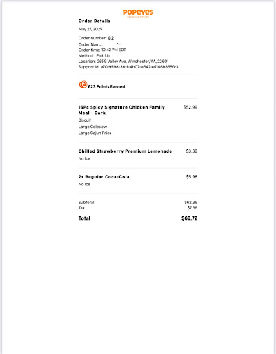 The star of the show, of course, was the mouthwatering food. The crispy, perfectly seasoned chicken was nothing short of a culinary masterpiece, and the signature biscuits were the perfect accompaniment. What truly stood out was the attention to detail in every dish; it was clear that the kitchen takes immense pride in their craft. The cleanliness of the restaurant was also remarkable, making the dining experience not only delicious but also comfortable. I can't express my appreciation enough for the Winchester Popeyes ā it's a local gem that consistently delivers delicious, high-quality food with exceptional service, and I can't...