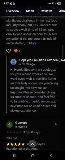This is from Nov 2024- About a month ago I came by, it was 7pm, their sign said the lobby closed at 9pm, the doors were locked, so I was like ok I'll go through the drive thru, we wait in line 20 min, this woman finally answers and asks if I can wait a few min lol I think this poor woman was alone, probablly had to cook and go to the bathroom when she could, so after waiting all this time I order the Spicy style chicken. You know that's where they get "Louisana kitchen" from, she tells me it'll be bout 20 more minutes, I cancel my order and leave. I'm drivin by yesterday, say to myself ok maybe they had a bad night. I'm at the counter, gonna use my survey reciept coupon from a different Popeyes to get 2 peices of free chicken. The manager is too busy to come to the front and guess what....it'll be 20 more minutes if I want Spicey Style Chicken lol is everyone having to wait for Spicey style? Avoid this place until they change management and can get it together, it's in trouble and bad shape, it needs corporate...