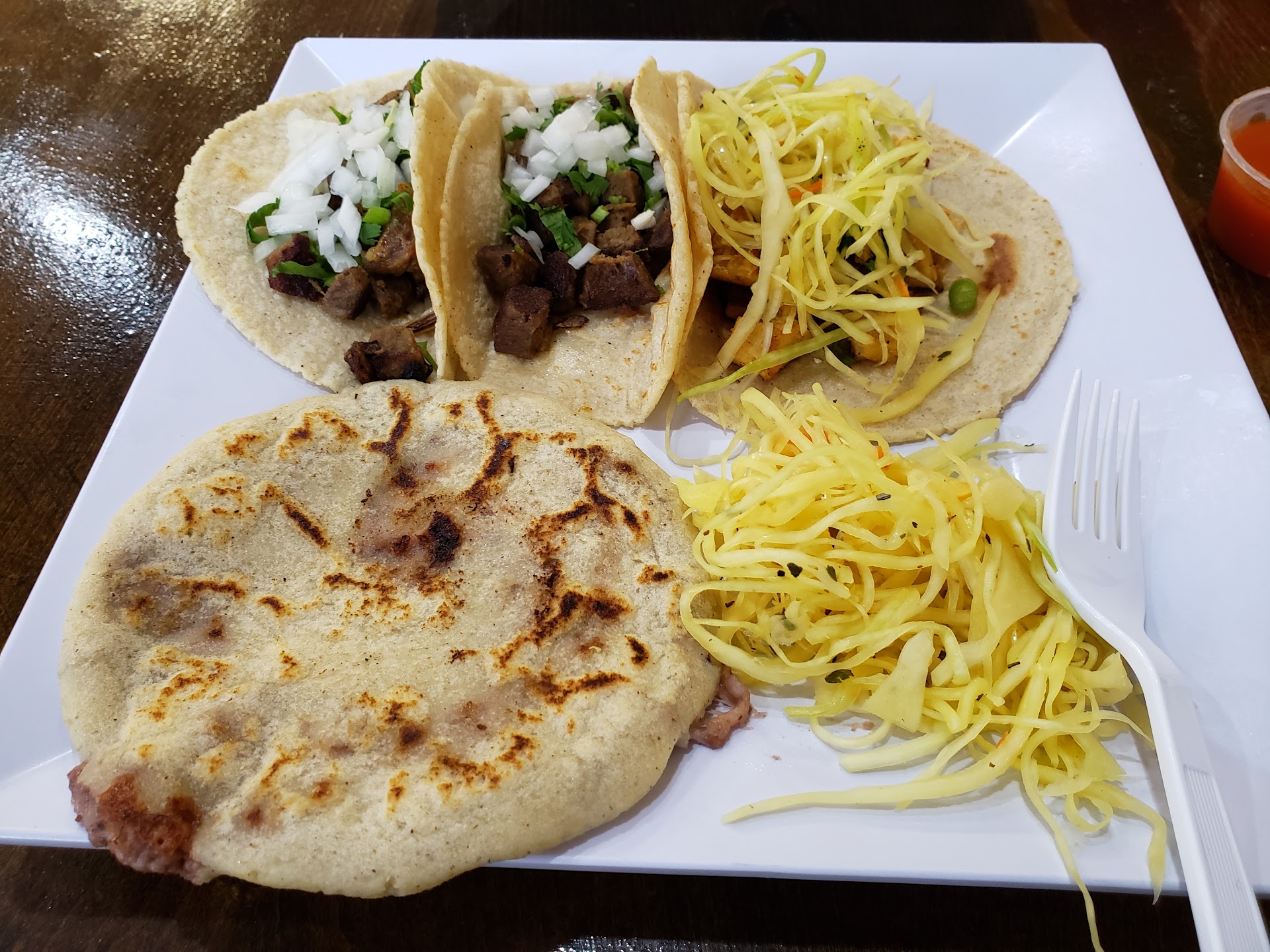 Delicious pupusas! Very fresh and generous sized portions. Not much to look at from the outside, in fact I've driven passed it forever without even noticing it was there. Don't let that fool you, however. Very friendly inside and these guys can cook! No chips and salsa offered but we didn't need it. We tried a little of everything as you can order most of the menu items a la cart. I'd say the tacos and pupsas are the stars of the show. We'll definitely be...
