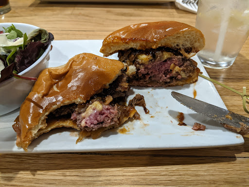 If there was a four and a half star choice this would be my rating. The cocktails had good pours and some local distillery choices. We had no reservation but were seated right away on a busy Saturday night. Burgers come with the option of pink or no pink and both of ours came to the table as ordered. They also have fine dining items as specials including a filet mignon on mushroom risotto and grilled swordfish.