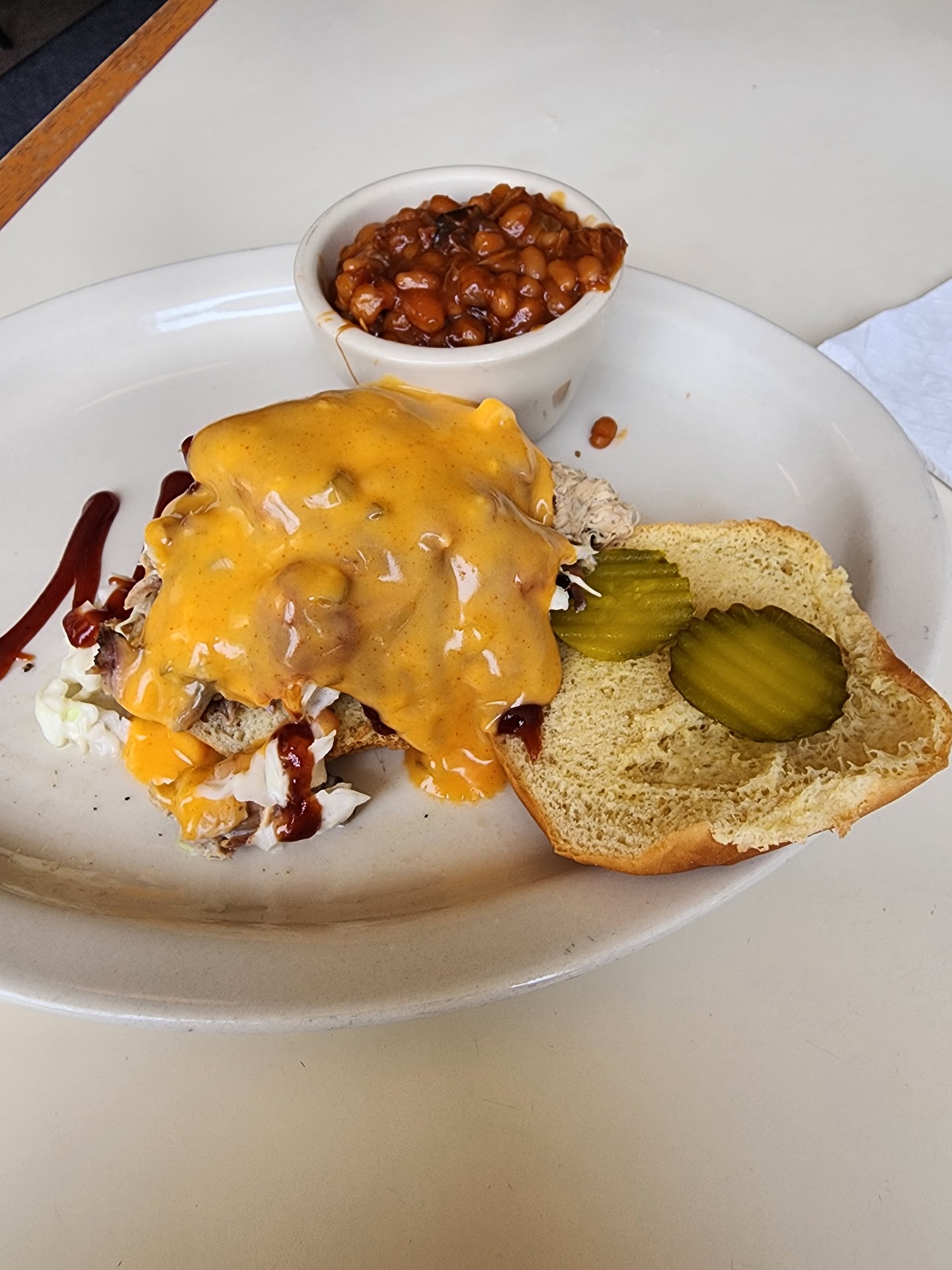 Read moreMy father and I ate here for the first time we both had the sampler platter with pulled pork smoked chicken smoked sausage and brisket one of the most tenderous flavorful briskets that I ever had the chicken was fall-off-the-bone the pulled pork was top-notch also has baked beans macaroni cheese and coleslaw it was all just as good and better than most as any BBQ places I've been in my year's of trucking over the road in 48 states.. if someone would have ever told me a place like this could be this good in Winchester I would have called them a liar you just...