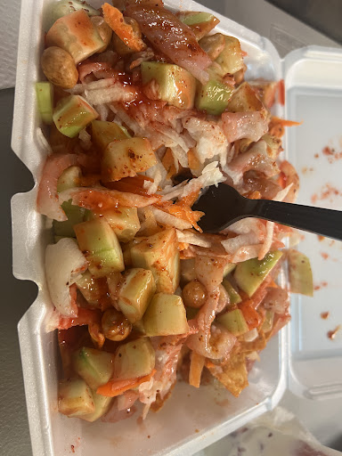 I got dori locos- nachos with carrot, jicama, cucumber, taijin, Japanese peanuts and pork rinds (marinated, not fried). Dori locos were pretty filling tbh- the fat of the cueritos de cerdo is an interesting taste. All the veggies are freshly cut; juices squeezed in front of you.