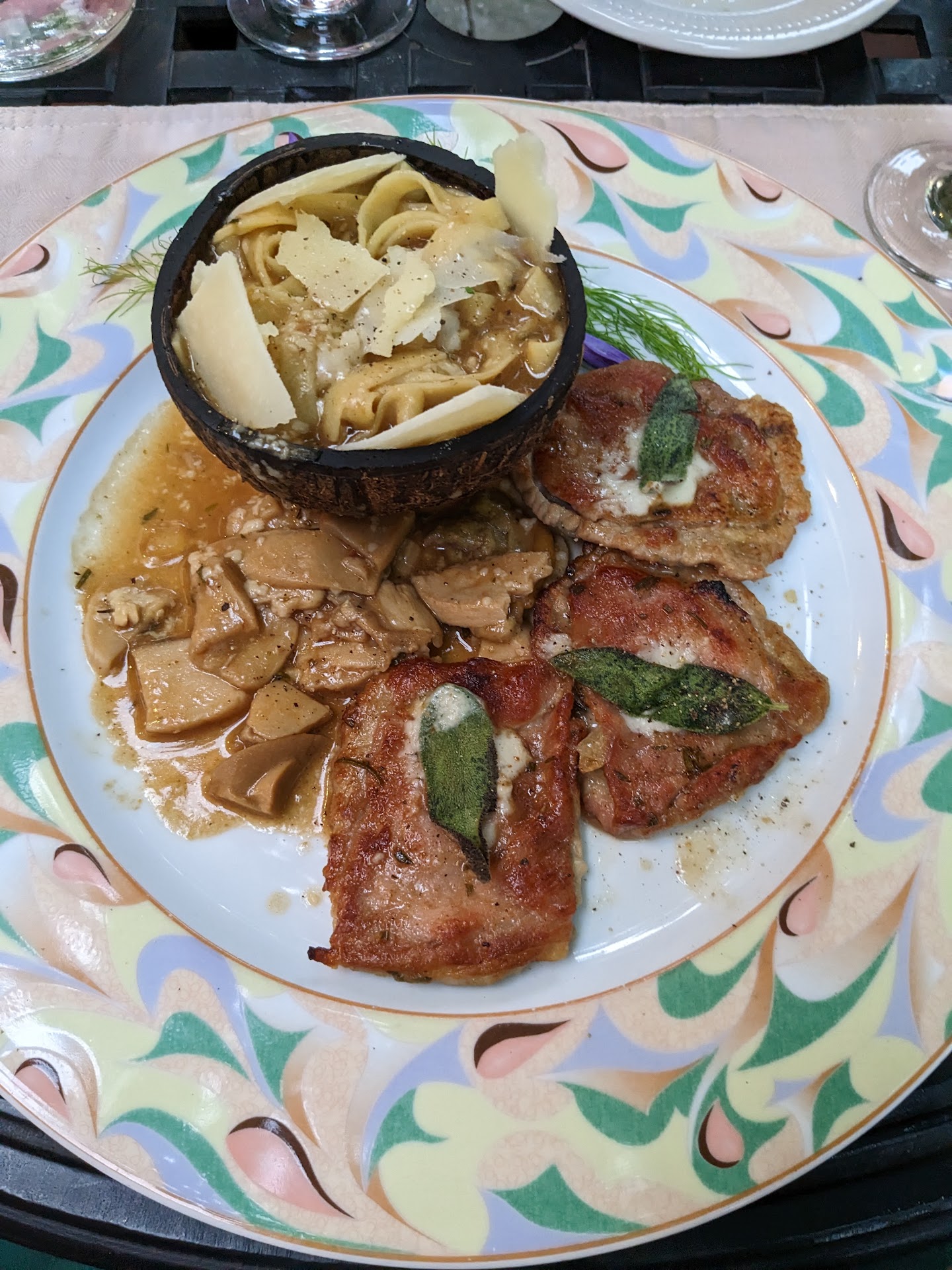 Main Course: The veal seemed processed and was not good quality. The marsala dressing tasted more like Chinese Teriyaki. The "imported" mushrooms were from a can. The potatoes were undercooked and crunchy.