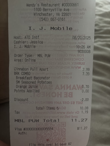 Read moreI went to this Wendy on Berryville Ave in Winchester this past weekend. I drove thru and ordered large order and woman on intercom was barely audible, possibly they were having some issues with their system. I repeated my order as I believed that she was unable to get my order correctly. This employee started yelling over the intercom that they had already received order I had just placed. This employee was extremely rude and obnoxious. When I went to pick up my order, I paid and she handed me four large drinks and lids on all 4 drinks were not properly placed and they spilled all over me and into my car! I returned all four empty cups as she had seen what happened and didn't offer any help or acknowledge the dilemma that she had provoked by not placing kids correctly. She grabbed the containers and slammed all 4 empty drink cups and holder onto ground right next to where I was parked waiting to pick up my order! I proceeded to park in the waiting order area to clean myself and my car. Luckily I had some wipes. I then proceeded to go inside to cancel my order I get a refund. Well after long wait for manager in charge, i was informed by manager that i could not get refund or that refund would only be half of what i had ordered. Staff started yelling over the manager aggressively yelling at me and blaming me for spilled drinks! Manager obviously didn't or couldn't control his staff. At this point I felt very threatened by the young staff yelling aggresively at me. I'm an elderly woman, 78 years old, handicapped,and I left and never recieved my refund. Worse service at this Wendy's by staff...