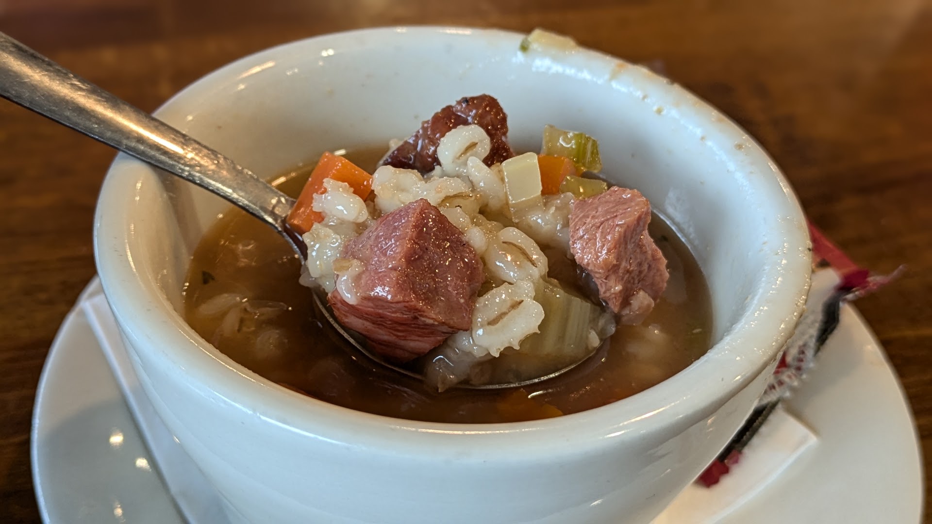 I had the meatloaf with French fries and carrots, which also came with a cup of homemade soup. I opted for chili (also homemade). My wife got a breakfast meal that was kind of a little of everything to try. Turned out nearly everything is made homemade in the kitchen, not frozen and trucked in like so many other places, and all the meats/seafood/produce is fresh.