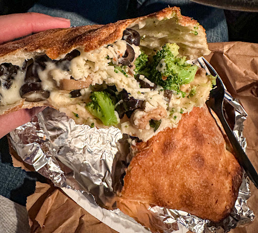 Stromboli toppings chosen: broccoli, peppers, onions, tomatoes, extra cheese. It arrived to the table (they do at least deliver the food to the table) it looked perfect, but it wasn't! The broccoli was still frozen making the cheese not even melt in most of the inside of it. I took out the broccoli (honestly still cold and frozen on the stalks) , I ate half and took the other half home in hopes of it thawing and eating later. When I mentioned it to the counter staff (when asking for a to -go box) and told her to feel the chunks of broccoli I had picked out and said it was still frozen. She simply took the tray, after I boxed up the rest, and said she'd let the cook know.