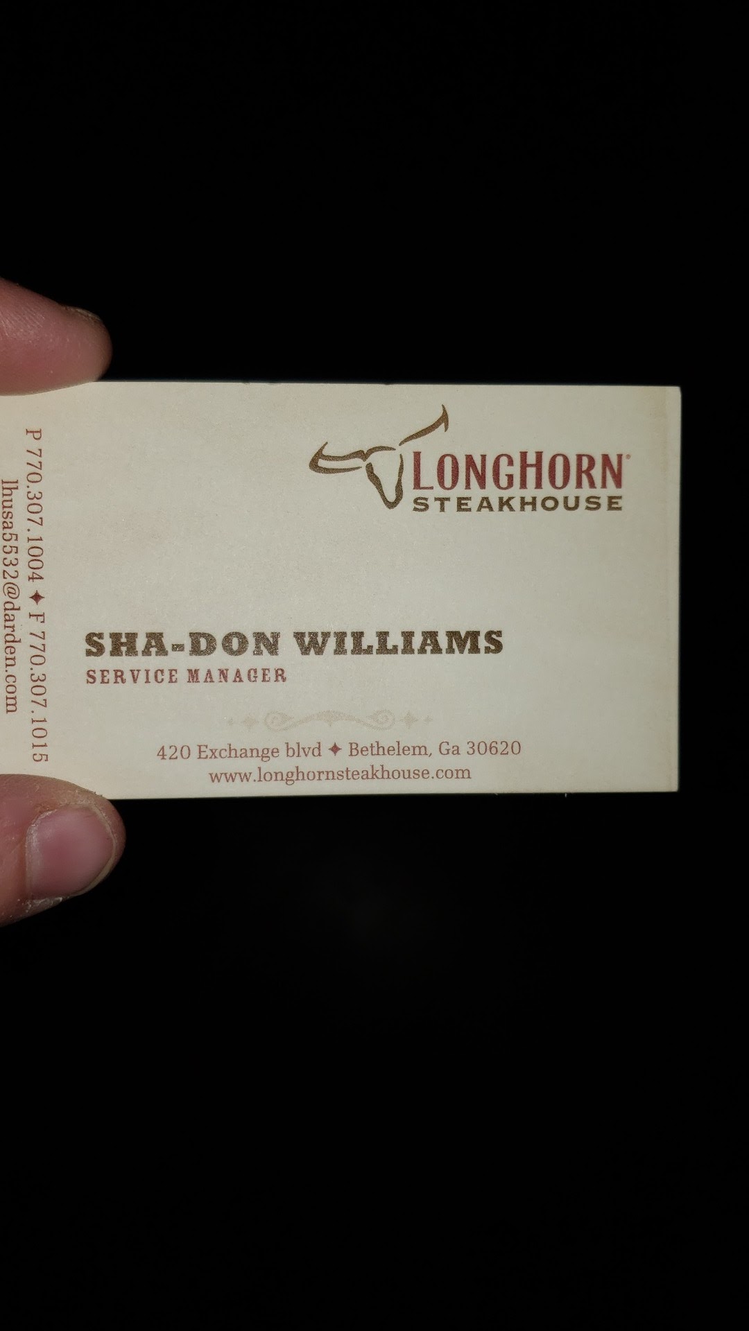 Read moreLonghorn has always been a favorite of mine. However, for some reason this location just can't get it together. It seems no matter what time I go, its just a circus. The last time we dined inside, we waited for about 5-10 minutes at the hostess stand (employees passing back and forth) it wasn't until a bus boy passed by and asked if he could help because he noticed us standing there so long. Apparently we arrived during shift change. Once we were seated, we ordered our appetizer along with our meal. Appetizer was great. But then... Our server seemed to disappear. Luckily, she stopped by about 35 minutes later to introduce us to the server that would be taking over so she could leave. My husband asked her to check on our food before she left...turns out she forgot to put our food in the system. At this point, we wanted to leave. The server explained she had went ahead and put our food in once she realized she had forgotten to, so we could either pay for the food we had not gotten or speak to the manager. Naturally we choose to speak to the manager. About 10 minutes passed, the sever came back and said she couldn't find the manager anywhere but our food was almost done! Are food came out, we got togo boxes, paid and we we're pulling out of the parking lot we saw the manager coming out looking for us. We left. The last time I placed a pick up order online I waited 20 minutes went to pick it up the bar tender said the online system wasn't working so...I placed the order again w/the bar tender about 20 minutes passed. Where I was sitting at the bar to my right, I could see into the side of the kitchen where I guess the bar tender fixes the drinks for the dine- in guests. The bar tender was eatting something along with another server (no problem, I totally get it) about that time, a manager passes so I asked could she check on my order. Turns out the bar tender and other server we're eating on my togo order! Once I paid and left I went home to make sure I didn't pay twice for the one order. Of course I did. I can't blame Longhorn on that but, I would think if I knew the online ordering system was down...maybe just maybe, I would put that online. Instead of guests coming in waiting for food and then saying oh yeah that's...