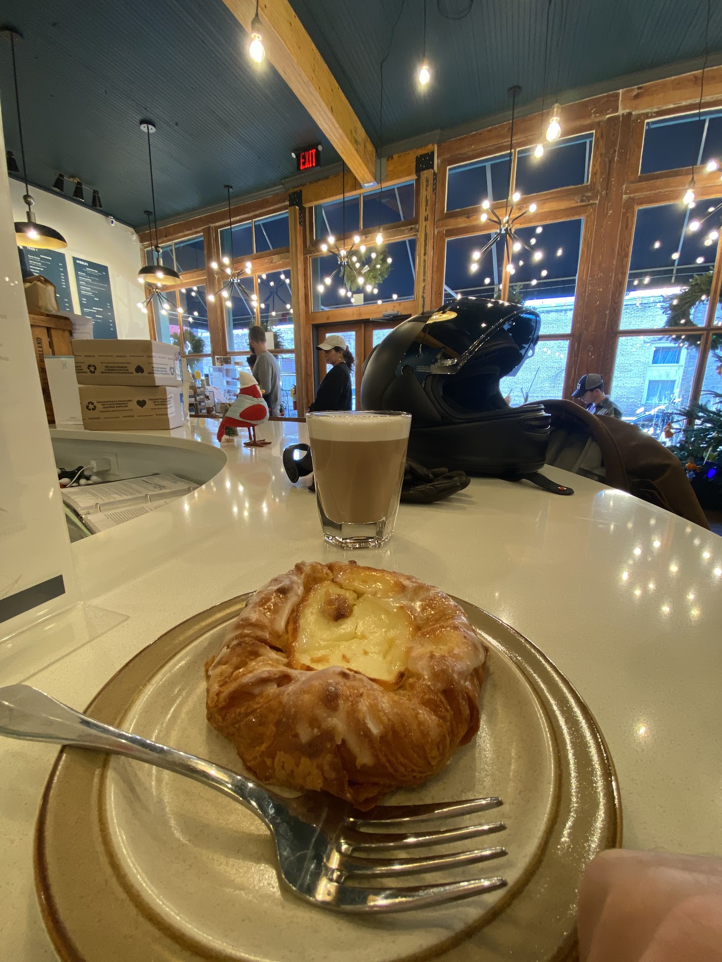 This is a 10/10 all around. The shop is so cozy and well designed, you can’t help but find a corner and enjoy your stay as you admire the architecture, aroma, and historic details. I had the London Fog Latte hot with oatmilk and a cheese danish. The latte was wonderfully creamy and the tea flavor was just right (not too floral or bitter). I would definitely order this latte again (every day even, if I lived closer!). I was thoroughly surprised by the quality, texture and taste of the cheese danish. I am accustomed to pastries and dessert being a mediocre offering at any coffee shop but this cheese danish was flaky, crispy, and the glaze finish reminded me of eating a cheese danish version of a cronut. If Night Sky is just buying these danishes from a grocery store or Costco, I’d be surprised because this danish surpassed any that I’ve had in the past. Kudos to the owners for establishing a quality coffee cafe in a town that needs more local...