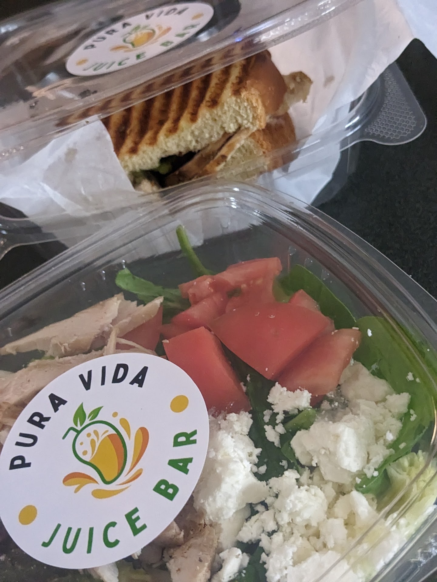 Ordered a Chipotle chicken 1/2 panini and a 1/2 Power House salad, no tomato.